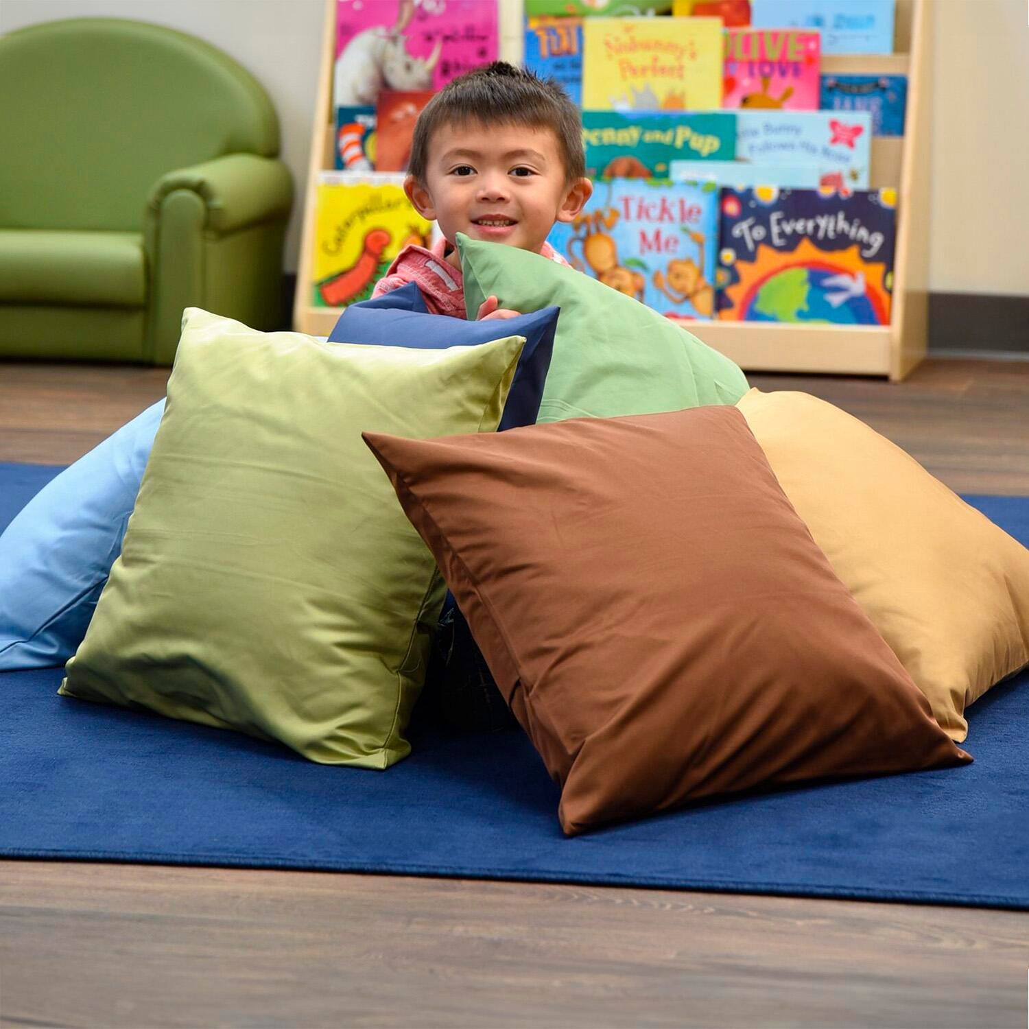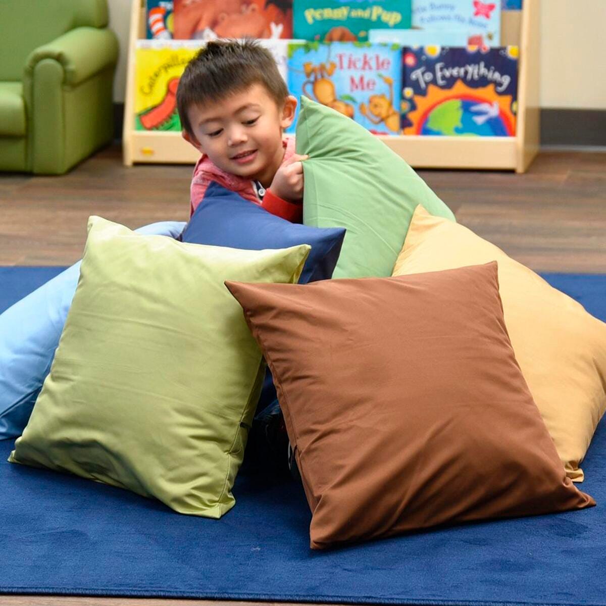 A colorful way to cuddle up! Soft pillows in cozy woodland colors are a perfect addition to any classroom. These 6 small colorful pillows can be used in any number of ways. Let your little ones show you what to do with these kid friendly tactile discovery cushions.