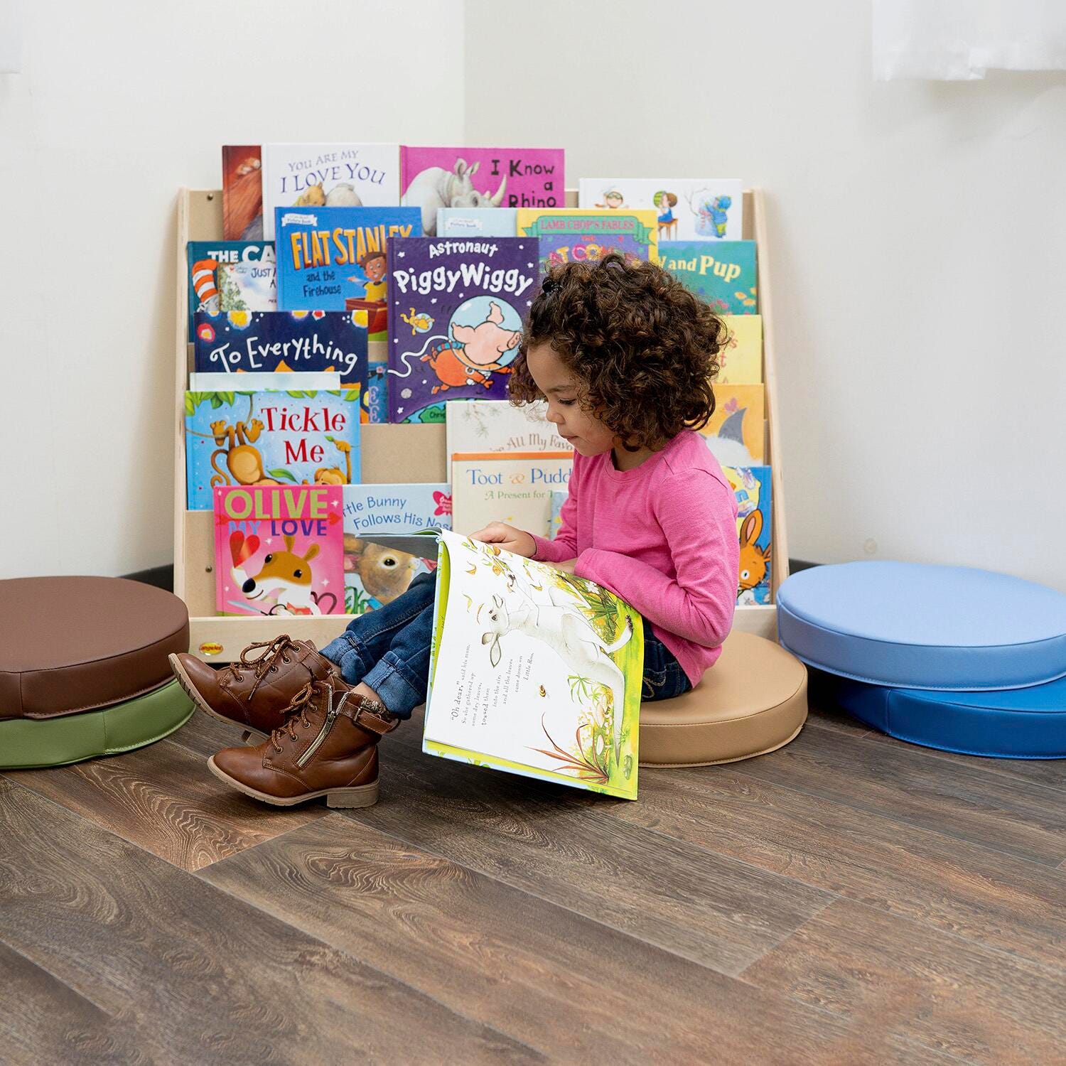 Children's Factory Cozy Woodland Cushion is made for ages 10 months and above, meaning it's the perfect floor cushion for your playroom, preschool, kindergarten, care center, or any space young children gather for story time or circle time. Each round cushion measures 15 W x 15 D inches has a foam thickness of 2-1/2 inches for added comfort.