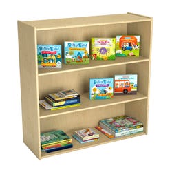 The Childcraft® 3-Shelf Storage Unit is designed for classrooms, playrooms, libraries, and childcare centers, providing an easy-access solution for young learners. Featuring deep, sturdy shelves, this wooden bookcase accommodates books, puzzles, blocks, and more. Constructed from 5/8-inch thick, 11-ply birch plywood, it offers exceptional durability and stability, while the smooth finish and recessed hardboard back panels provide an attractive and functional design. Shelves are perfectly sized for little hands, encouraging independence in organization. Measures 35-3/4 W x 13 D x 36 H inches.Features