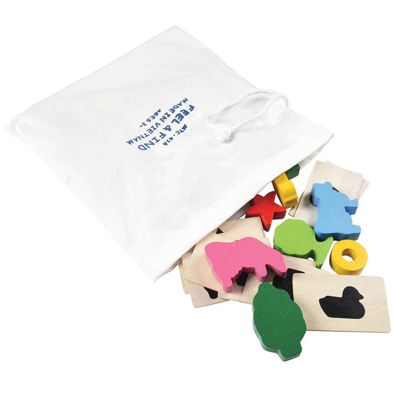 Children will match and sort their way toward developing early cognitive skills. This highly tactile set of wooden tiles is made to build confidence and early learning, and is perfect for self-guided play. For ages 3 and up.