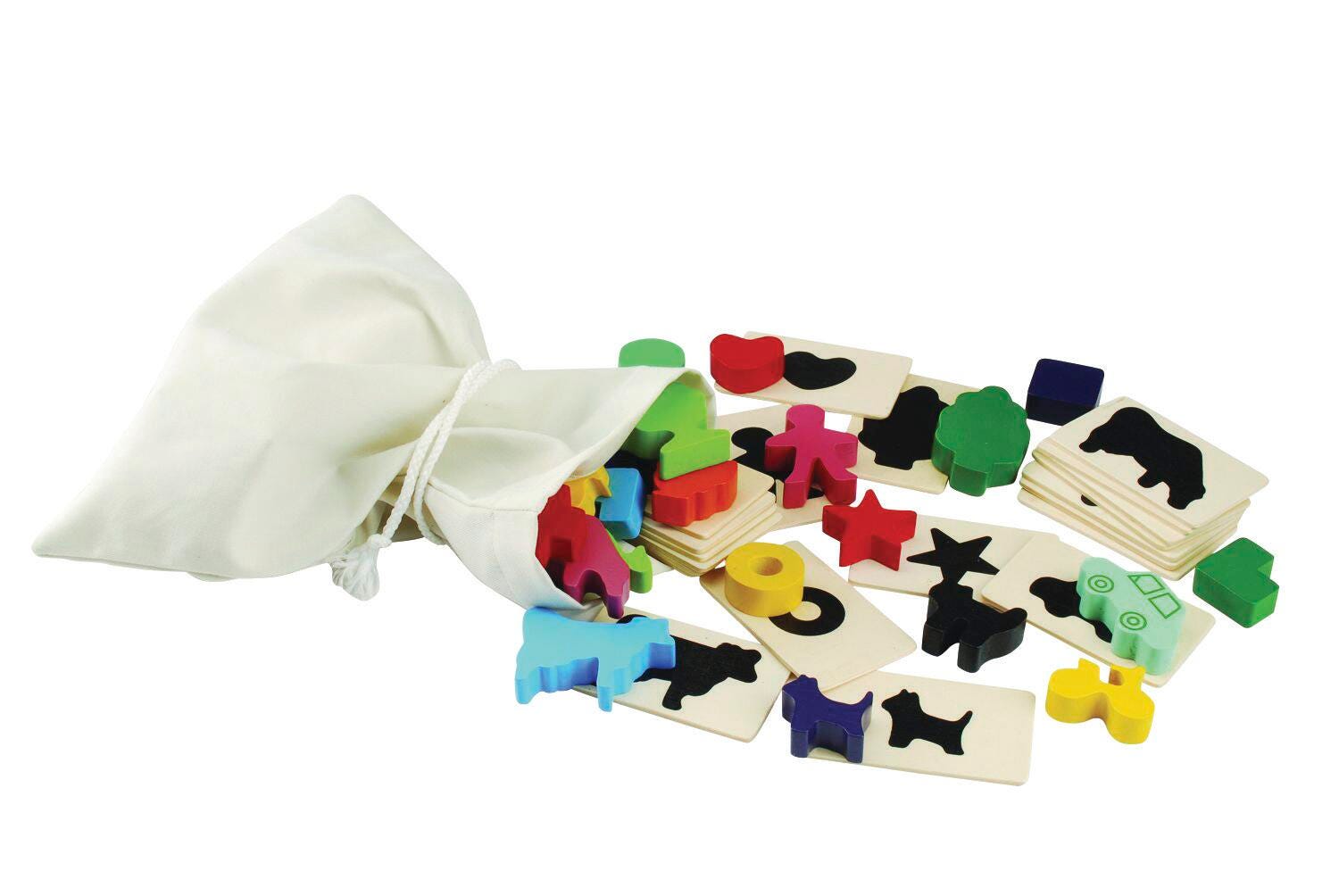 Young children will have fun matching wooden shapes to their matching wooden designs. They can also sort by color, by shape, by preference, or however they choose to play. Designed to inspire early learning through tactile exploration and discovery, children will build confidence as they find new ways to sort and explore. These high-quality manipulatives will aid in developing language skills as children find pictures that are similar to items on each wooden tile. Comes with 22 colorful wooden shapes and 22 corresponding wooden tiles.Features