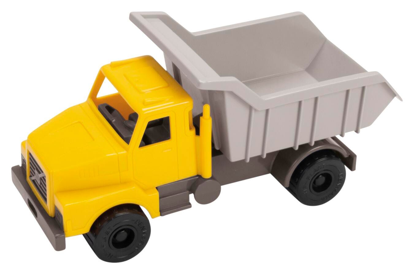 Dantoy provides an economical dump truck that is perfect for use indoors and outdoors. This heavy duty, brightly colored plastic vehicle is great for sand play! Measures approximately 7-3/4 x 3-1/2 inches. Ages 2 and up. Colors may vary.