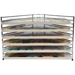 The Childcraft® Single Wire Puzzle Rack provides a simple yet effective storage solution for keeping flat puzzles organized. Designed with a durable 9-gauge triangular wire frame, this wire rack holds up to 12 puzzle boards measuring up to 9 x 12 inches each. The narrow 0.45-inch spacing between dividers ensures compact storage and easy access while keeping puzzles securely in place. Ideal for classrooms, childcare centers, and homes, this lightweight rack helps maintain a tidy learning environment. This puzzle storage organizer measures 12-1/2 W x 7-3/4 D x 8 H inches. Puzzles sold separately.Features