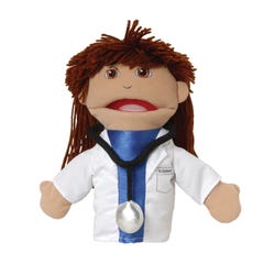 This set of six open-mouth 9-inch hand puppets depicts diverse puppets of all genders in varying career roles. Designed for young children to adults, these puppets are made to explore the world through the lens of roleplaying and creative play. Made to inspire language learning and social learning as children and adults work through stories and ideas with puppets in hand. Perfect for preschools, childcare centers, care centers, classrooms, and anywhere children gather and learn. Each has a soft stuffed head with embroidered facial features, yarn hair, and permanently attached clothing. Ideal for ages 2 and up.Features