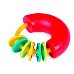 Let your babies shake and rattle to the rhythm of Toddler Ring Toys from Edushape. Durable, round, and textured O-shaped rings each contain different sound-making instruments on the inside (from rolling colored beads that can be watched to mini plastic cymbal shakers and actual bells) that are activated with a simple shake from your little one holding one of the rings. Each rounded ring is easy to grip (and measures approximately 3-1/2 x 1 x 3-1/2 inches)Sold as set of 4 in assorted colors, textures, and sounds. Designed for ages 3 months and up.Features