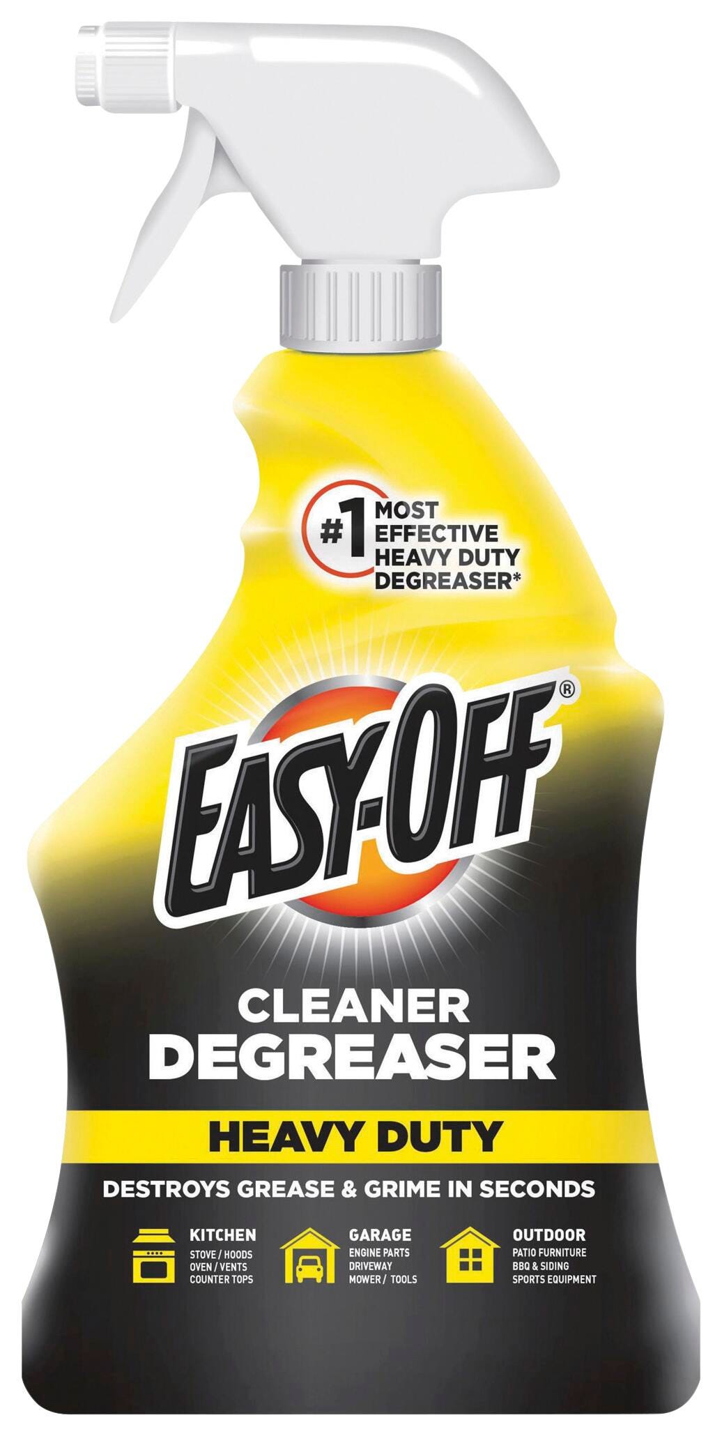 Easy-Off Cleaner Degreaser delivers strong grease-cutting formula that destroys grease and grime in seconds. With the heavy-duty formula, minimal effort is required to clean. It is great for the kitchen, garage and outdoors. Use the spray on stoves, ovens, vents, countertops, engine parts, driveways, tools, patio furniture, grills and sporting equipment.Includes: