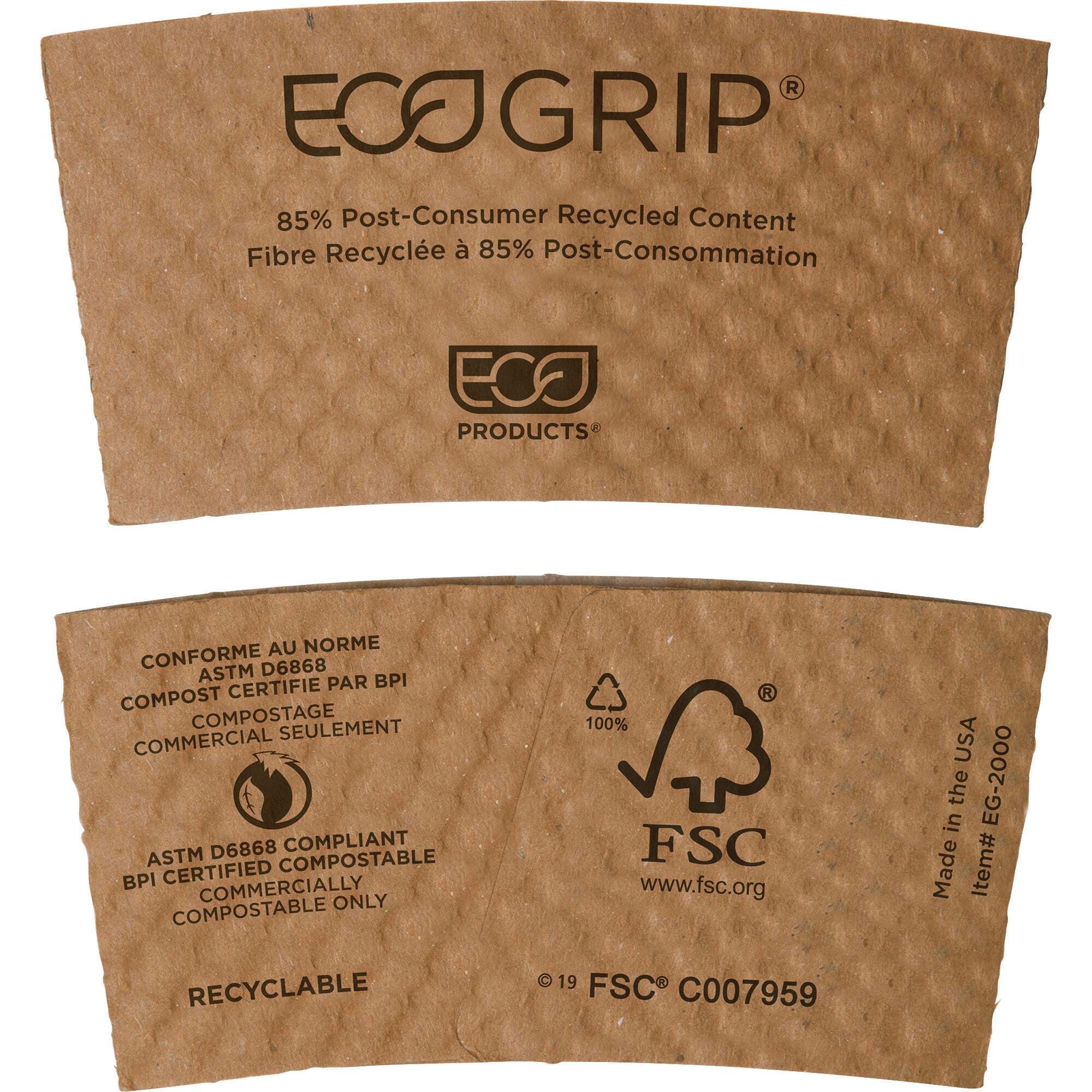 Eco-Products EcoGrip Recycled Paper Cup Sleeves, Kraft, Pack of 1300