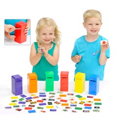 Educational Advantage Color Posting Game is a fun sorting game! Sort the photos by their color with these self-checking, real photo cards. Develop color recognition, sorting and fine motor skills. Features six brightly colored plastic boxes (red, yellow, blue, green, orange and purple), measuring 5-1/2 in x 2-3/10 in x 2-3/10 in. Includes 60 double-sided cards with colorful photos and the corresponding color on the reverse side. Cards measure 2 in x 1-3/10 in. Ages 3 and Above.