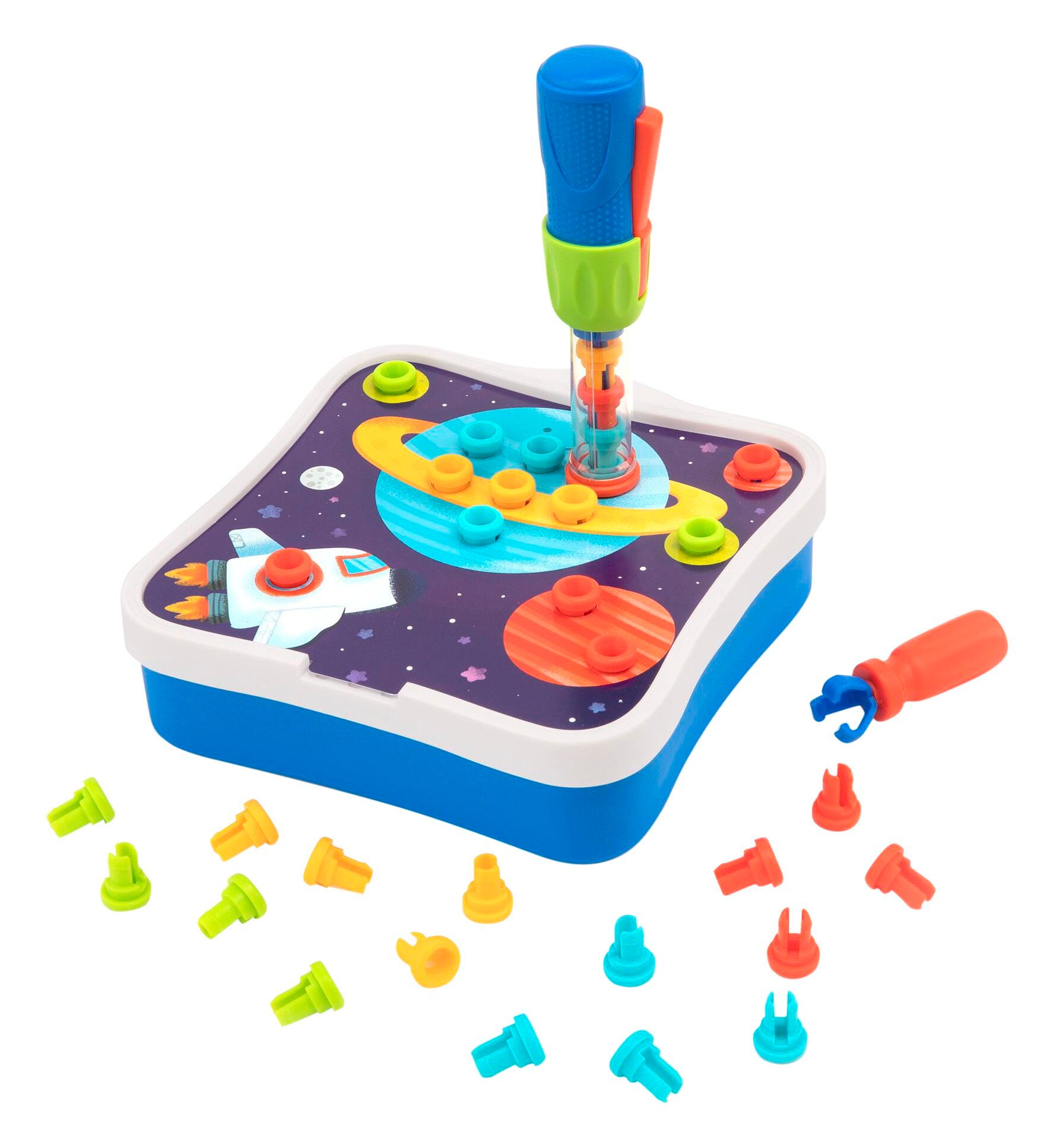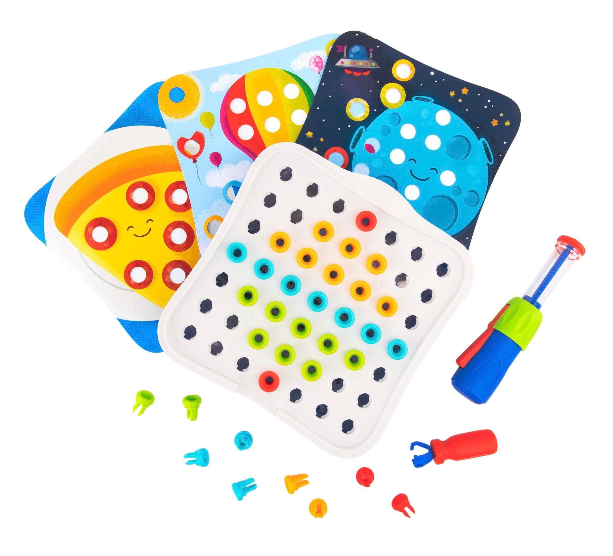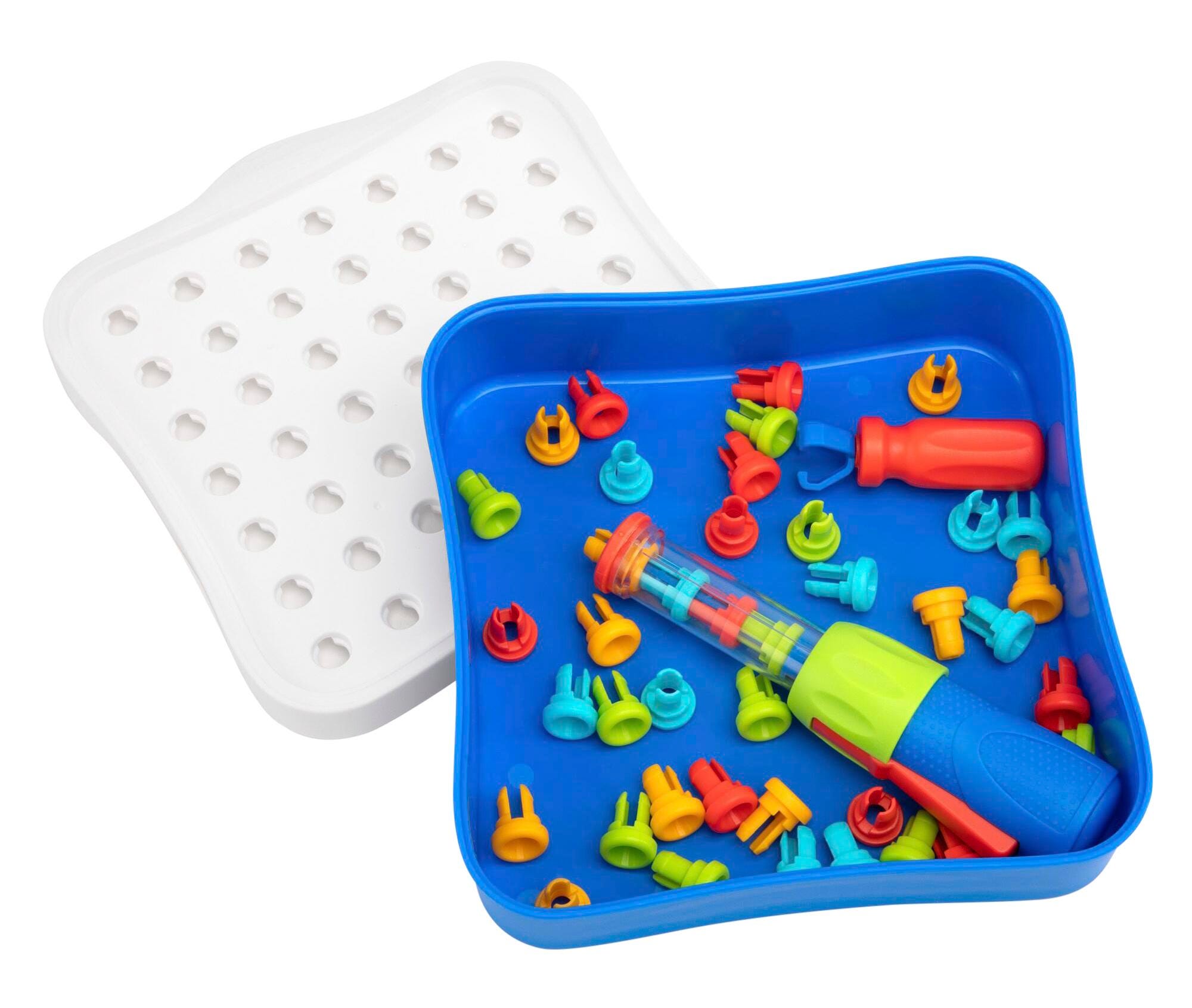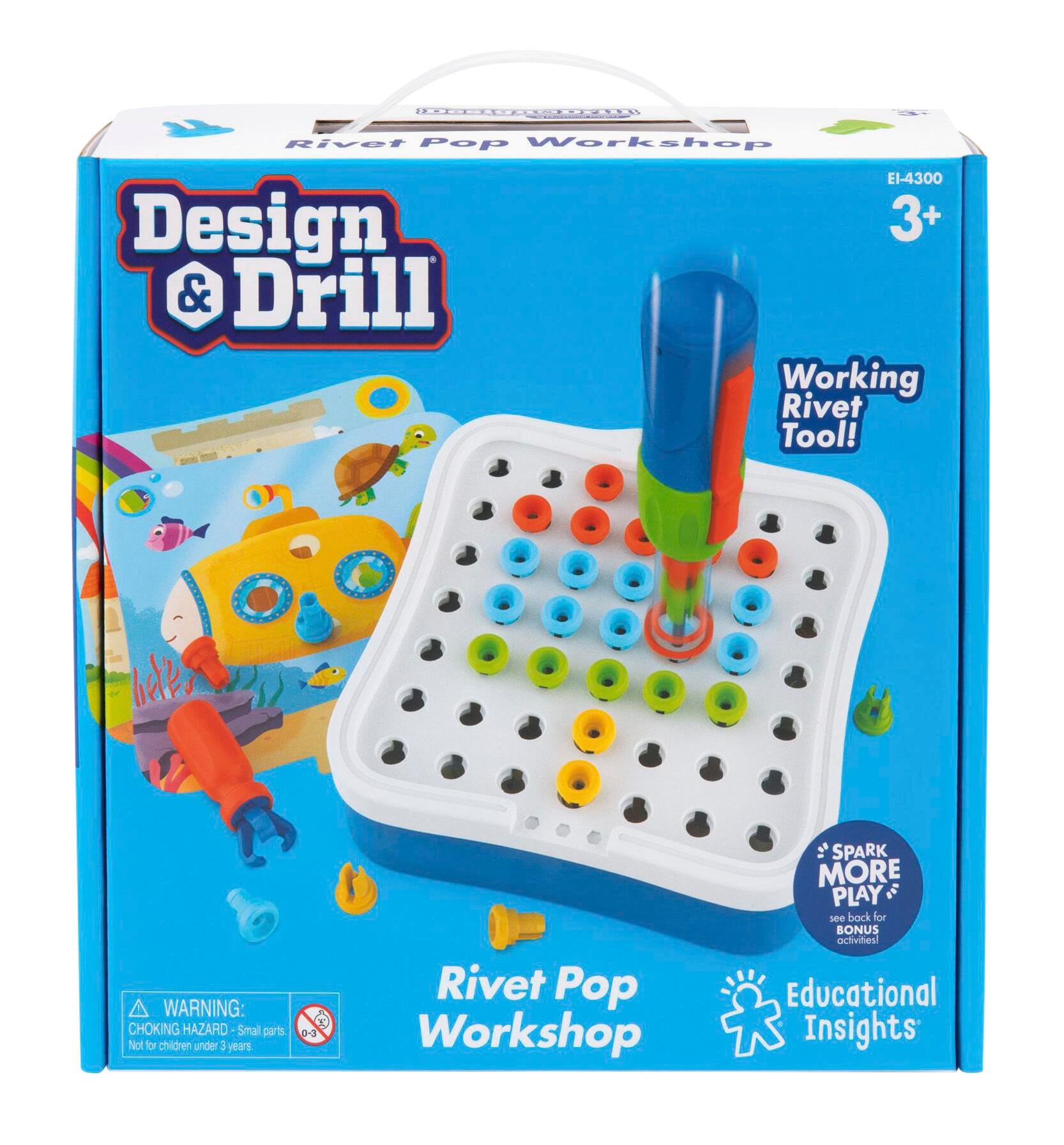 Pop into early learning! Design and Drill Rivet Pop Workshop includes a storage case activity board, rivet popper, rivet remover, 40 colorful rivets, and ten double-sided pattern cards.At Educational Insights we've been helping kids learn through play for the last 60 years. We take great pride in working with experts in many distinct fields—from scientists to teachers to artists—to ensure that our products are always the very best they can be. Our award-winning, best-selling toys and games introduce new interests, unleashing limitless possibilities and passions including Coding Critters, Hot Dots, Design & Drill, Playfoam, GeoSafari, Kanoodle, and BrainBolt.