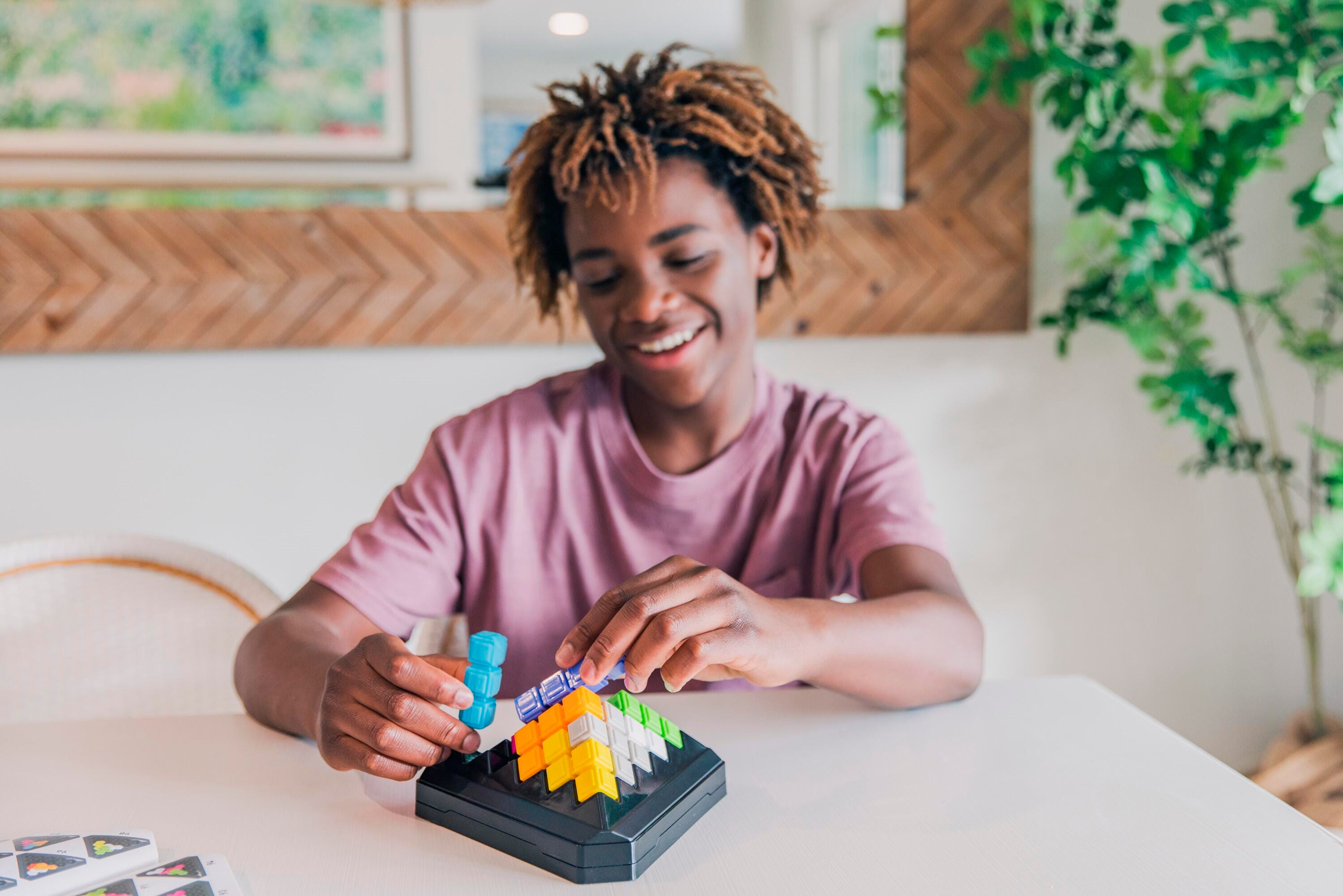 TikTok sensation puzzle game Kanoodle Pyramid features an oversized, pyramid-shaped, multi-player, Kanoodle puzzle tabletop board and unique, triangular pieces that fit together to solve 200 2-D and 3_D puzzles. Includes extra-large board (doubles as storage), 9 puzzle pieces, and puzzle challenge booklet.At Educational Insights we've been helping kids learn through play for the last 60 years. We take great pride in working with experts in many distinct fields—from scientists to teachers to artists—to ensure that our products are always the very best they can be. Our award-winning, best-selling toys and games introduce new interests, unleashing limitless possibilities and passions including Coding Critters, Hot Dots, Design & Drill, Playfoam, GeoSafari, Kanoodle, and BrainBolt.