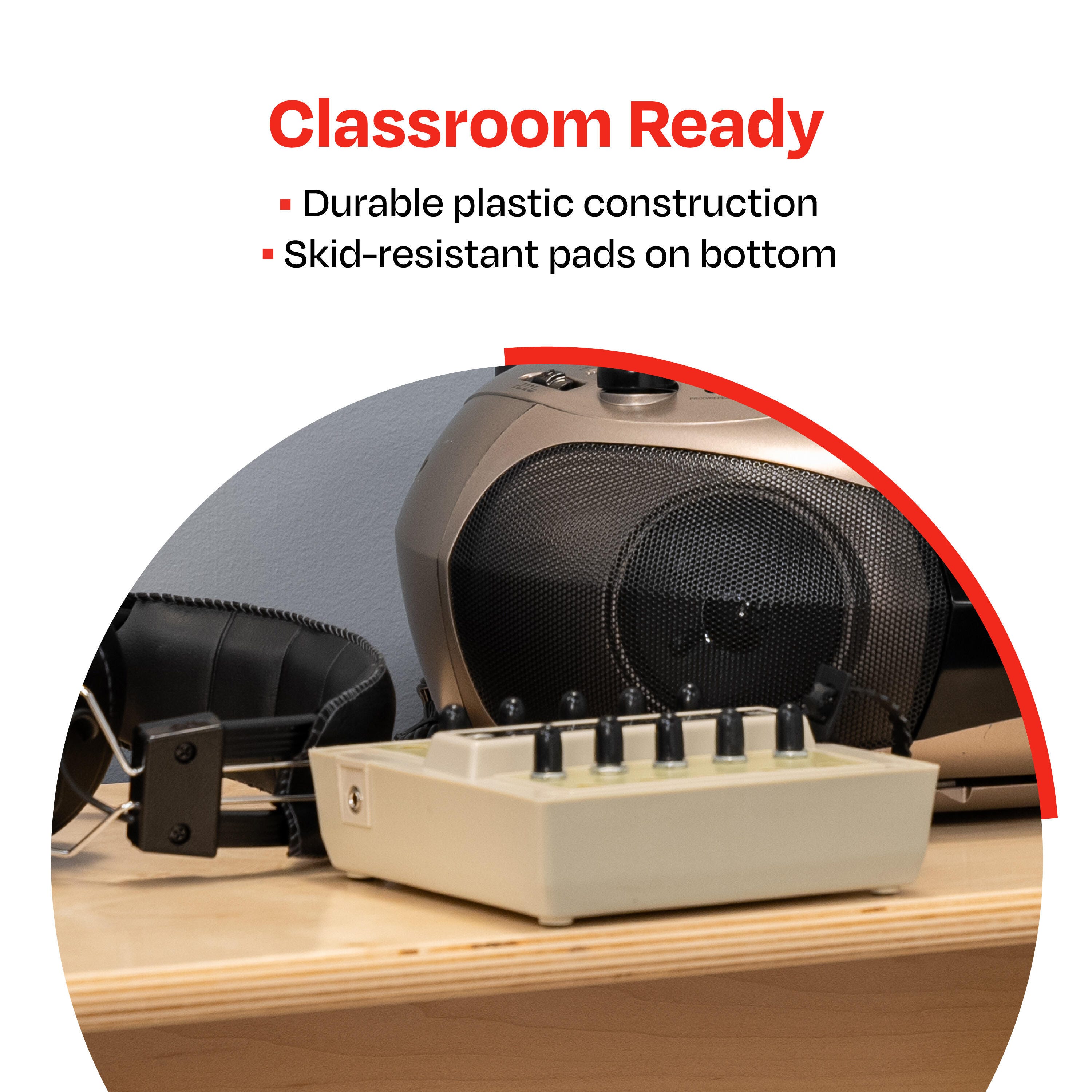 Create a space for up to 10 students to listen and learn, with individual inline audio control. Perfect for classrooms and language learning centers where clear audio is key.