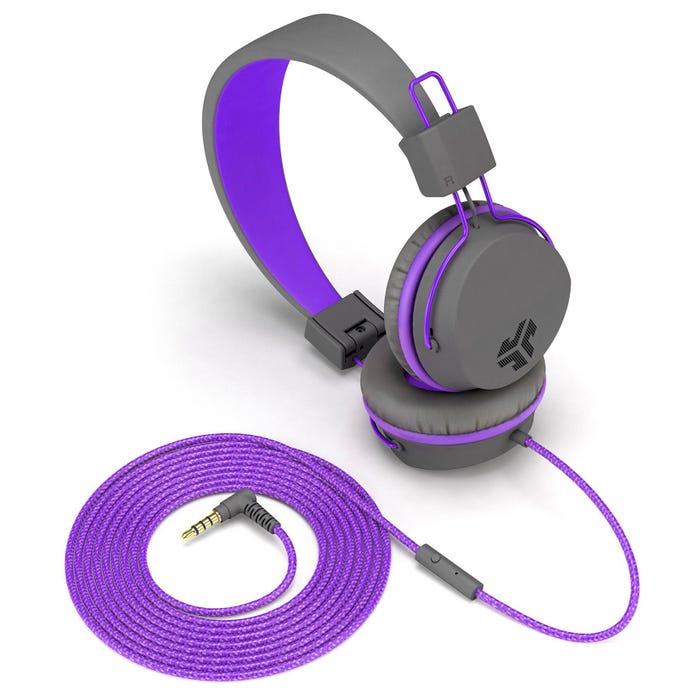 JLAB JBuddies Over-Ear Kids Folding Headphones, 3.5mm, Graphite/Purple