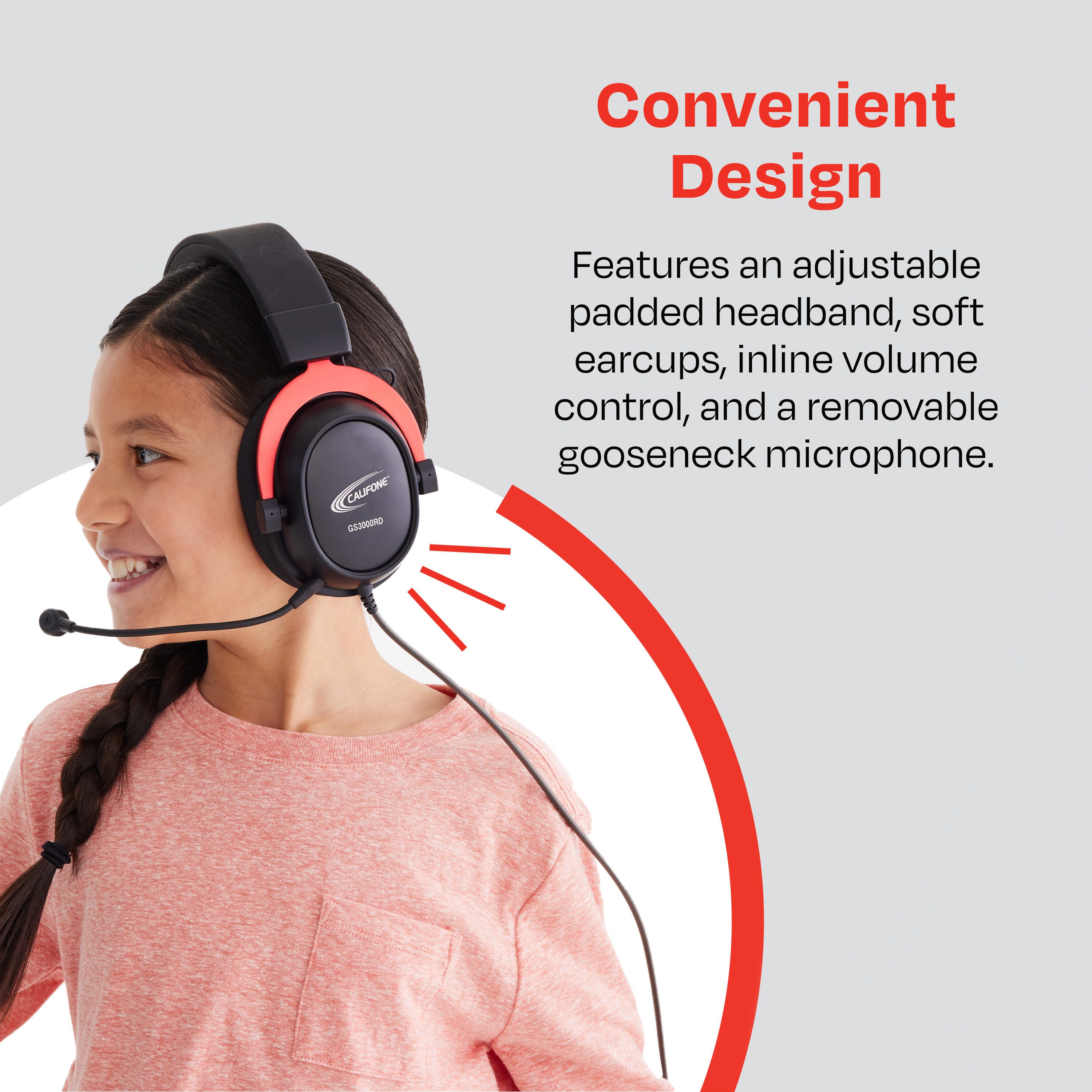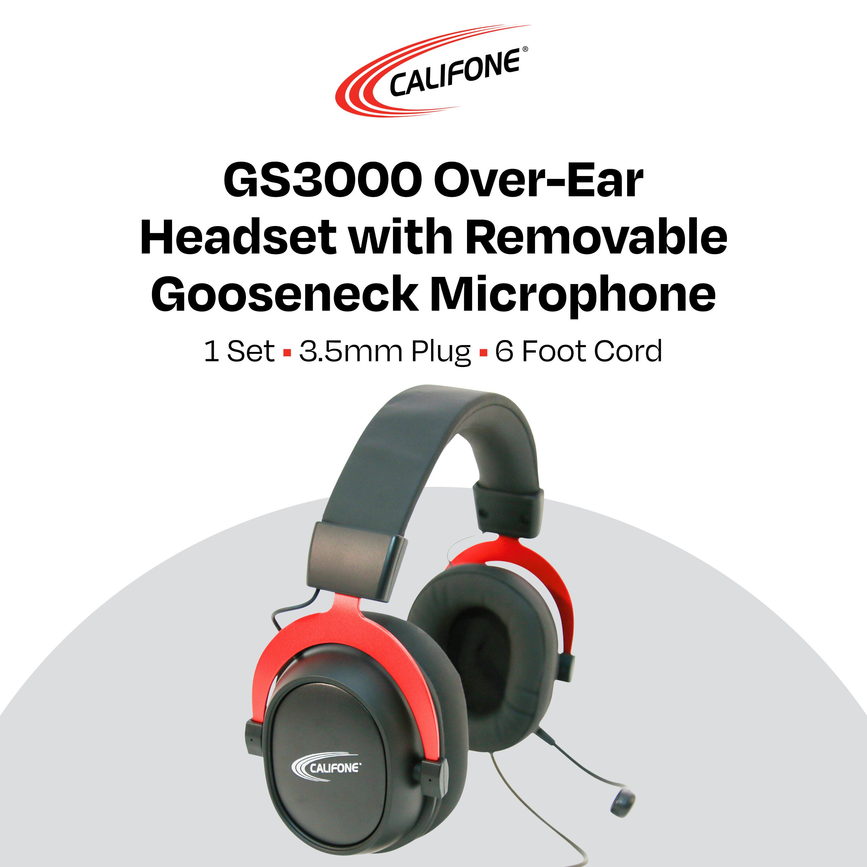 Califone GS3000 Over-Ear Headset with Removable Gooseneck Microphone has a versatile design for all of your virtual meeting needs. This over-ear headphones set comes in red. It has large, super-soft padded earcups attached to the adjustable, padded headband with strong metal arms. When there’s no speech required, simply unplug the removable microphone which has state-of-the-art inline volume control and noise isolation. Made for all ages, the highly durable CaliTuff cord is made of braided, PVC-jacketed material with a reinforced earcup entry point. It resists bending, cutting, and separation due to heavy use, chewing, or rough play. The long 6-foot cord has a 3.5mm plug for compatibility with Chromebooks, laptops, desktops, PCs, Windows, and Macs. This headset with removable mic is backed by a 3-year warranty.
