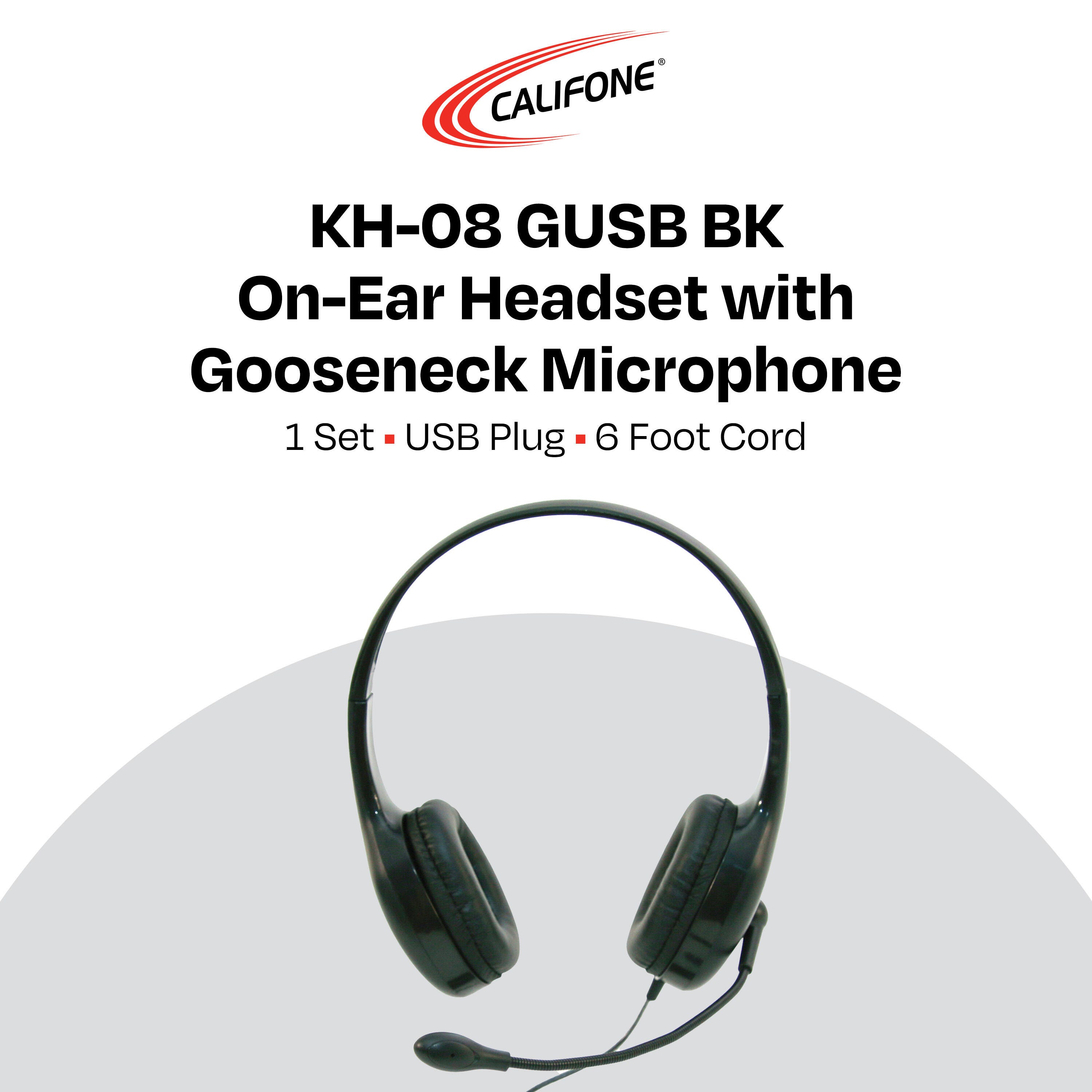 Califone KH-08 GUSB BK On-Ear Headset with Gooseneck Microphone, USB, Black