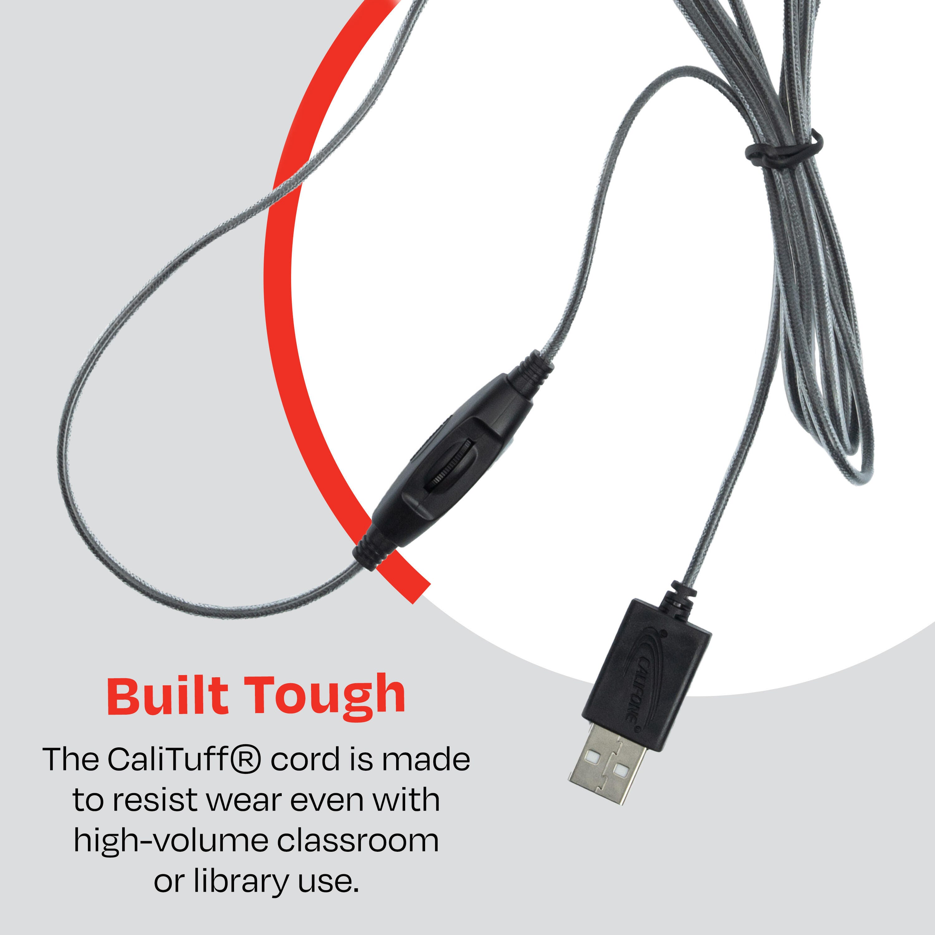• A highly durable CaliTuff cord is made of braided, PVC-jacketed material with a reinforced earcup entry point to resist bending, cutting, and separation