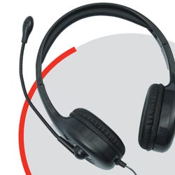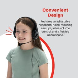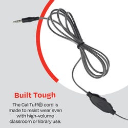 Califone KH-08GT BK On-Ear Headset with Gooseneck Microphone is perfect for classrooms, libraries, listening centers, and more. The versatile design allows for earphone-only use or earphones with a speaker. A unidirectional gooseneck microphone with an inline volume control can bend into position as needed or swing up when not in use. Made for all ages, the highly durable CaliTuff cord is made of braided, PVC-jacketed material with a reinforced earcup entry point. It resists bending, cutting, and separation due to heavy use, chewing, or rough play. The long 6-foot cord has a 3.5mm plug for compatibility with Chromebooks, laptops, desktops, PCs, Windows, and Macs. These black on-ear headphones with microphone are backed by a 3-year warranty.