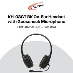 Califone KH-08GT BK On-Ear Headset with Gooseneck Microphone, 3.5mm, Black