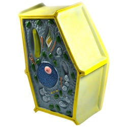 This detailed 3D rendering of a greatly magnified plant cell, with its vibrantly colored cell structures and organelles, is ideal for studying the structure and function of these various features of a plant cell...at 50 million times their true size! These colored/numbered features of plant cell model include: cell wall, middle lamella, plasma membrane, cytoplasm, nucleus, nucleolus, starch grain, vacuole, chloroplast, endoplasmic reticulum, and lysosomes. Key features are colored and numbered for comparison with the key that is included. This model is free-standing (no base nor base required) and measures 10 x 6-1/2 x 4 inches.