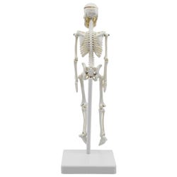 The Eisco Miniature Human Skeleton Model includes a rod mount and stand for display and makes an interesting desk ornament for any teacher, professor, doctor or student. Features movable joints and removable skull cap. Arms and legs are attached by threaded studs and nuts, allowing you to adjust their flexibility.Features