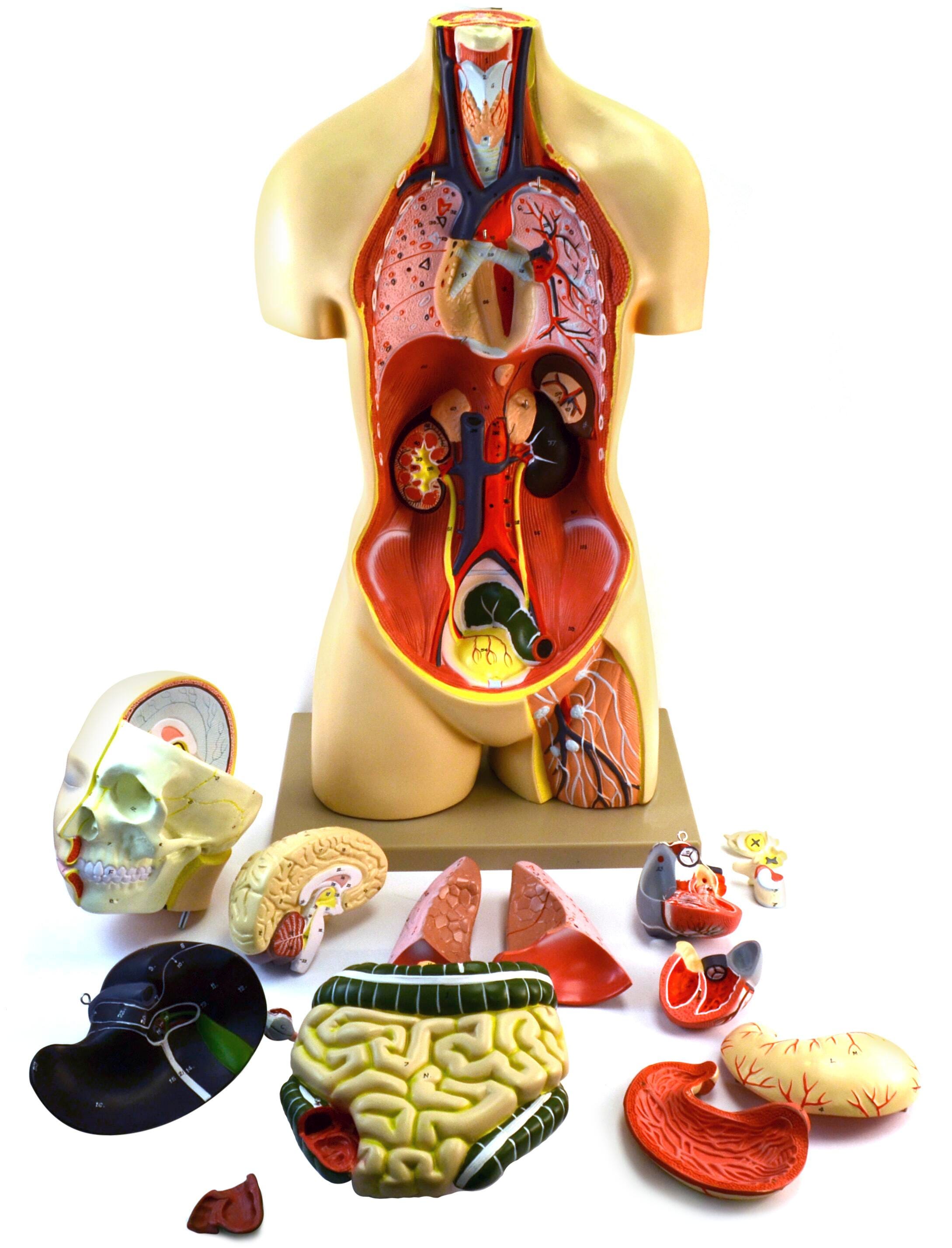 This life size human torso is the perfect core anatomical model for any high school classroom or biology enthusiast. Includes 2-part Lungs, 2-part Heart, 2-part Stomach, and 2-part Intestine. Measures 15 x 9.44 x 34.6 inches. Weighs 17-1/5 pounds.