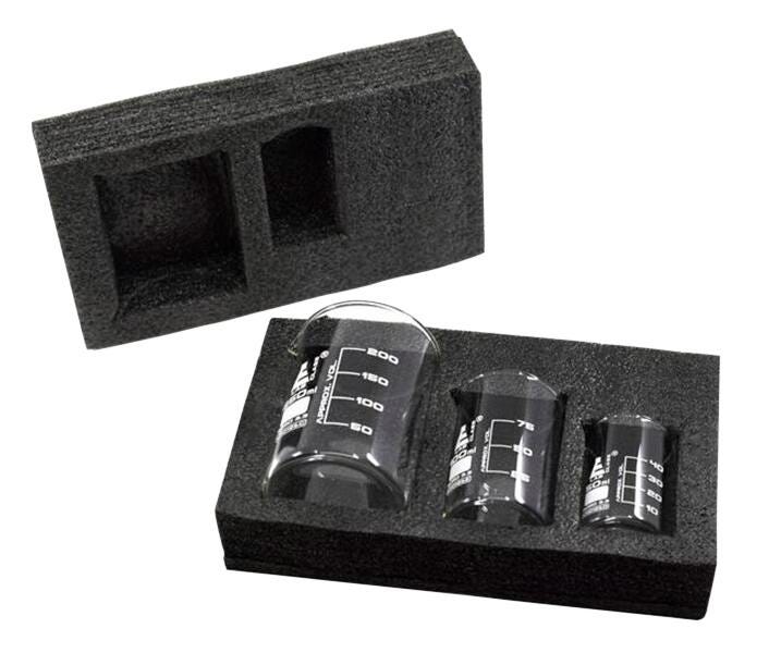 Beaker set is packaged in a custom fit, thick foam casing, for safe storage and worry free transport