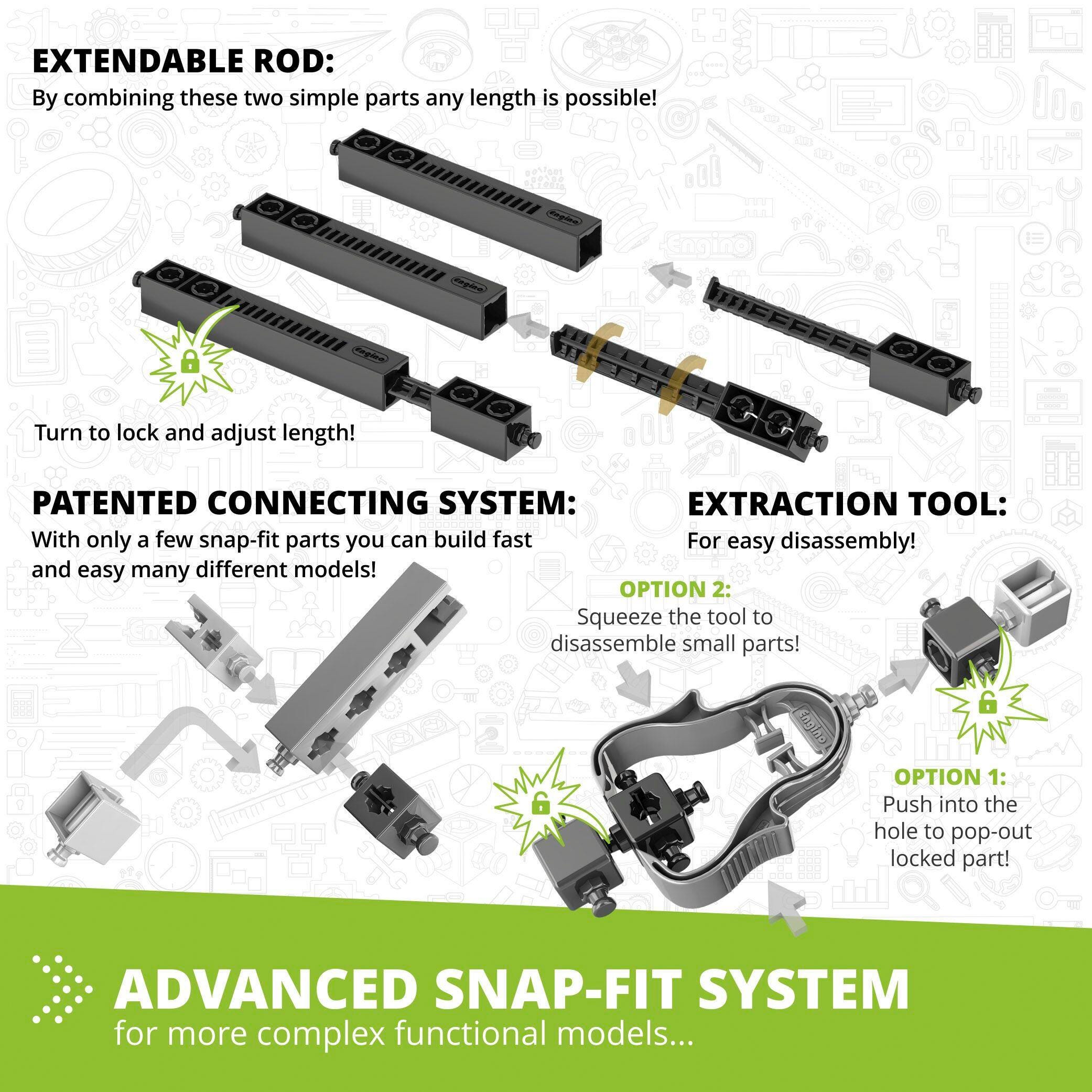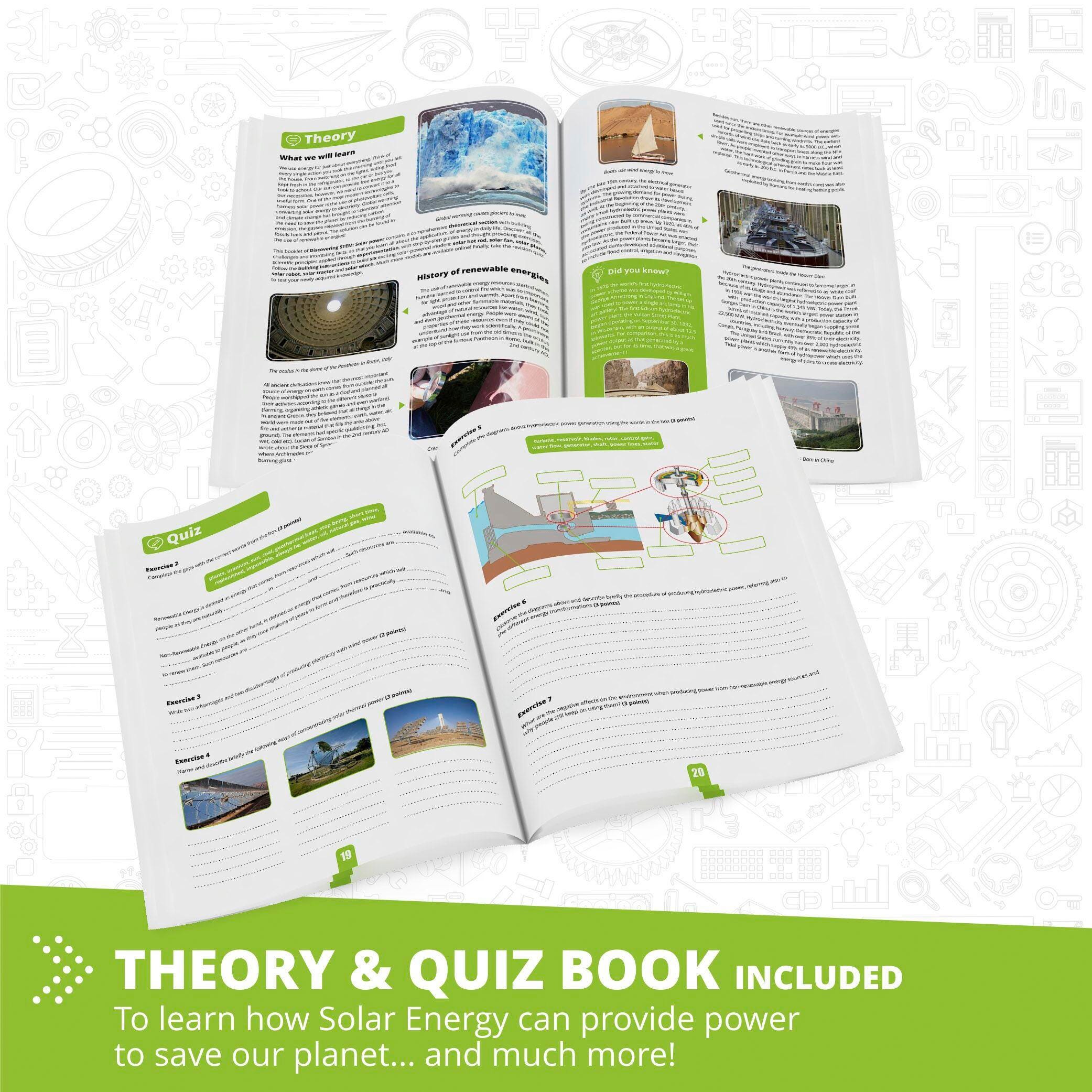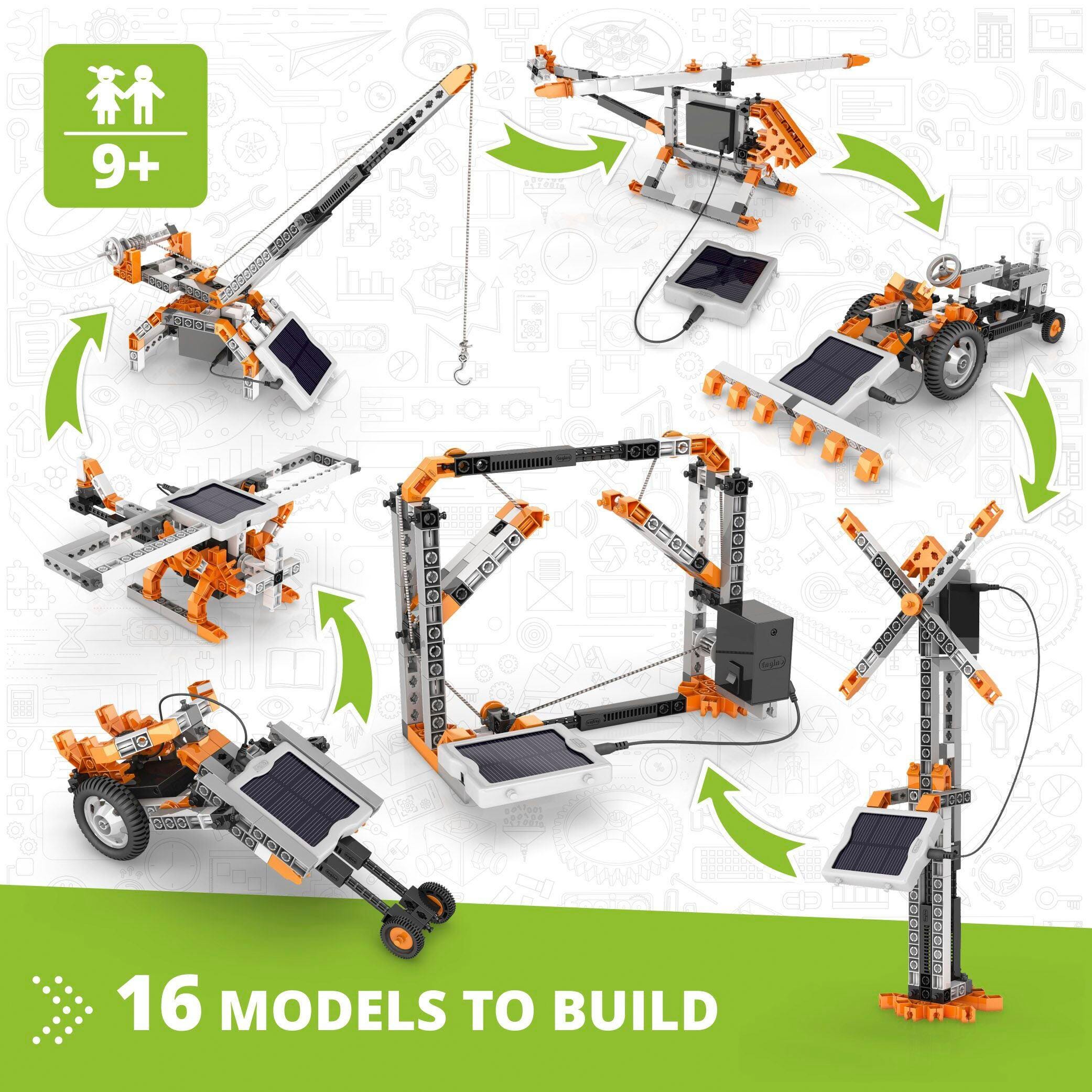 The sun can provide free energy for all of our needs, however, we need to convert it to a useful form. This set includes one 3V solar panel that powers an electrical motor, along with instructions for 16 solar powered models such as a chopper car, a fan, a plane, a robot and a winch crane.Students can find easy to-follow building instructions for all models either online or in the booklet included. The booklet provides detailed explanations of the different scientific principles applied and incorporates innovative experimental activities for hands-on learning. A Quiz section is also available to challenge students' newly acquired knowledge!Features