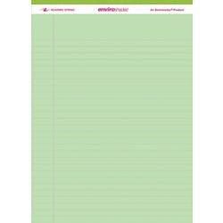 This Enviroshades Legal Pad measures 8-1/2 x 11-3/4 inches and features a green paper containing 30% post consumer waste. Each pad includes 50 sheets and pads are sold as 3 per pack. Pads are also recyclable. Green sheets have legal ruled blue lines and double red margin lines.Features
