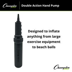 This Champion Sports Double Action Air Pump is a compact and efficient solution for your inflating needs! It features a double-action design that inflates on both up and down strokes to minimize inflation time and measures 7 inches. This ergonomic manual air pump is ideal for blowing up large inflatables like exercise balls, beach balls, and more.Features