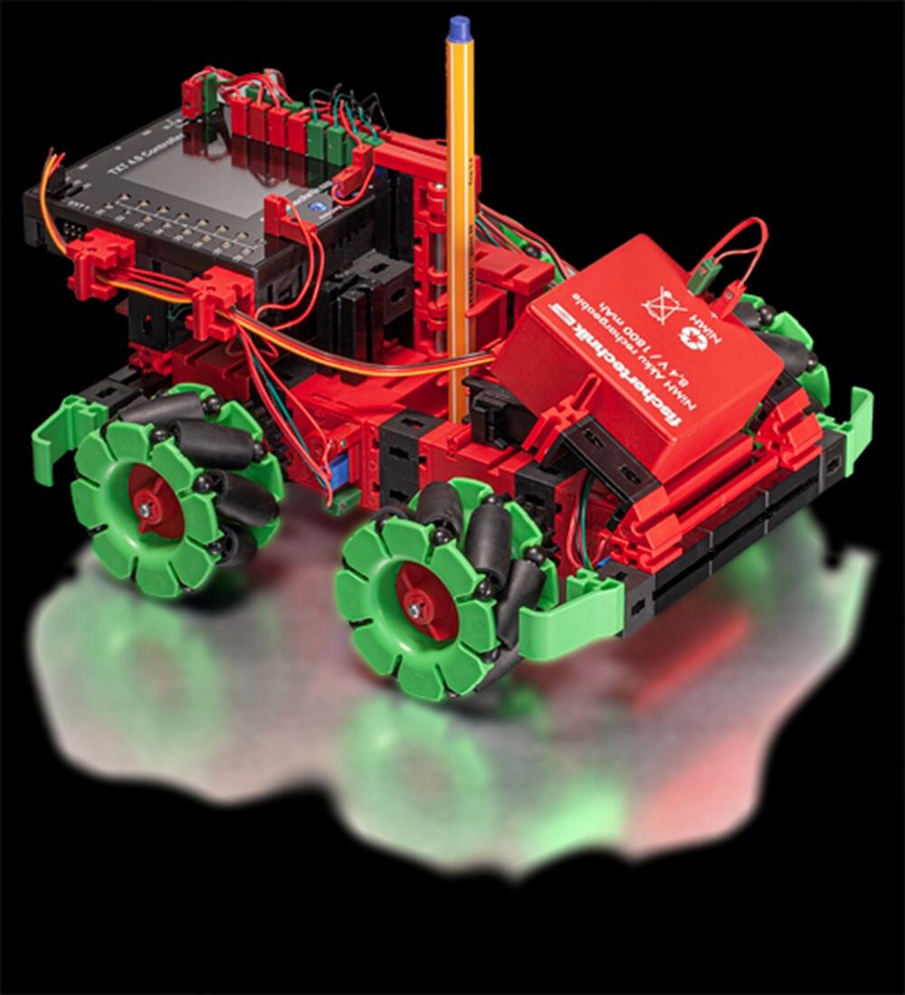 Together with the Robotics TXT 4.0 Base Set, four exciting Omniwheels models can be constructed