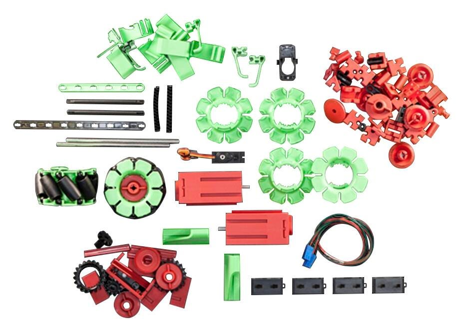 Component include 4x Mecanum Omniwheels, servo, 2x gear motor