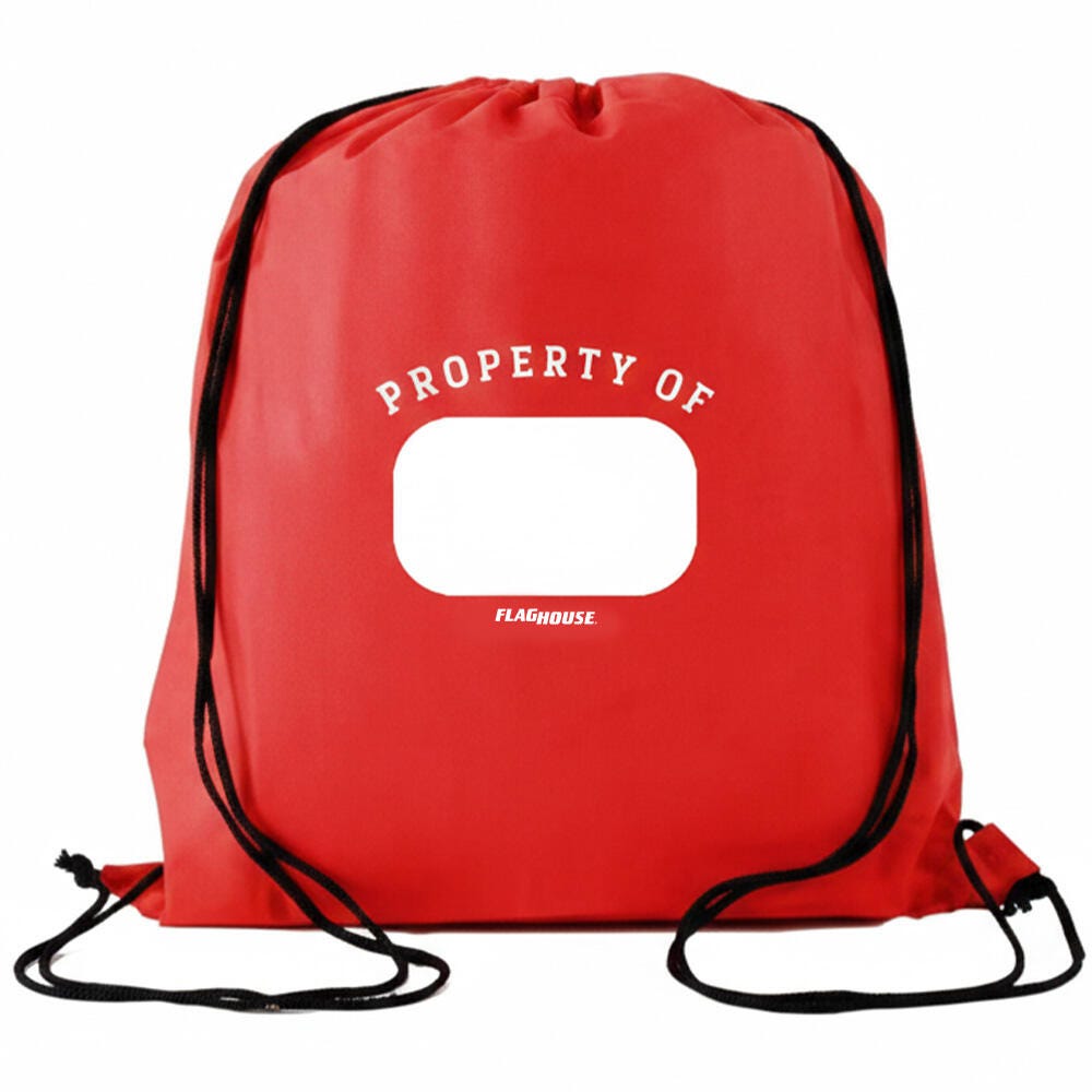 The FlagHouse Drawstring Backpack is a lightweight and practical storage solution. This versatile backpack features a drawstring closure and reinforced corners for added strength. It is a great hands-free bag for hiking, biking, skating, or any activity that requires an economical carrying bag. The bag is made of a sturdy 210 Polyester, measures 14 x 17 inches, and is red with a white print that provides a space for labeling or personalization.Features