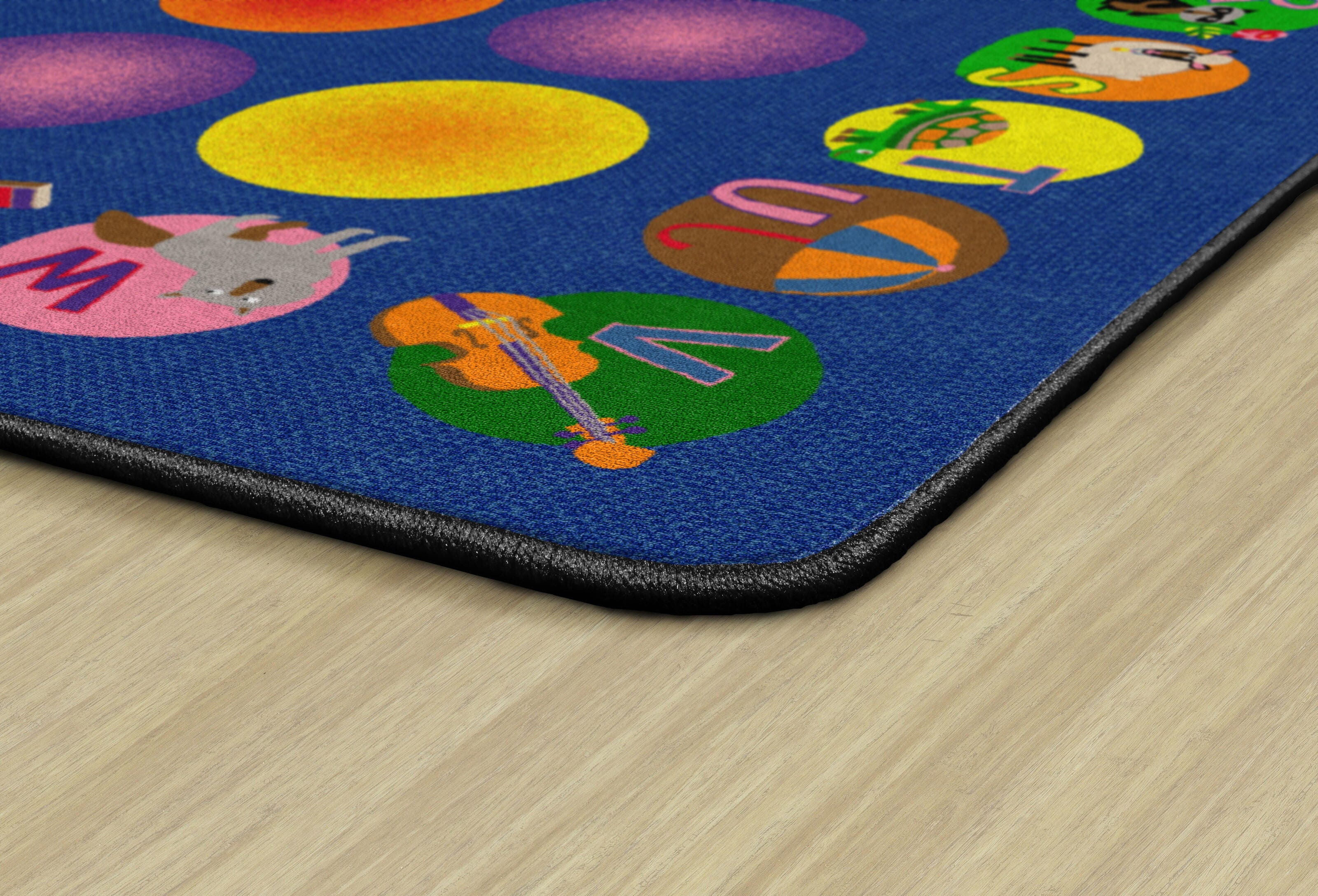 Flagship Carpets Circle Time Learning Rectangle Carpet helps students have fun while learning the alphabet with circle time learning. Its border features cheerful illustrations representing each letter. Available in several sizes to match your space.