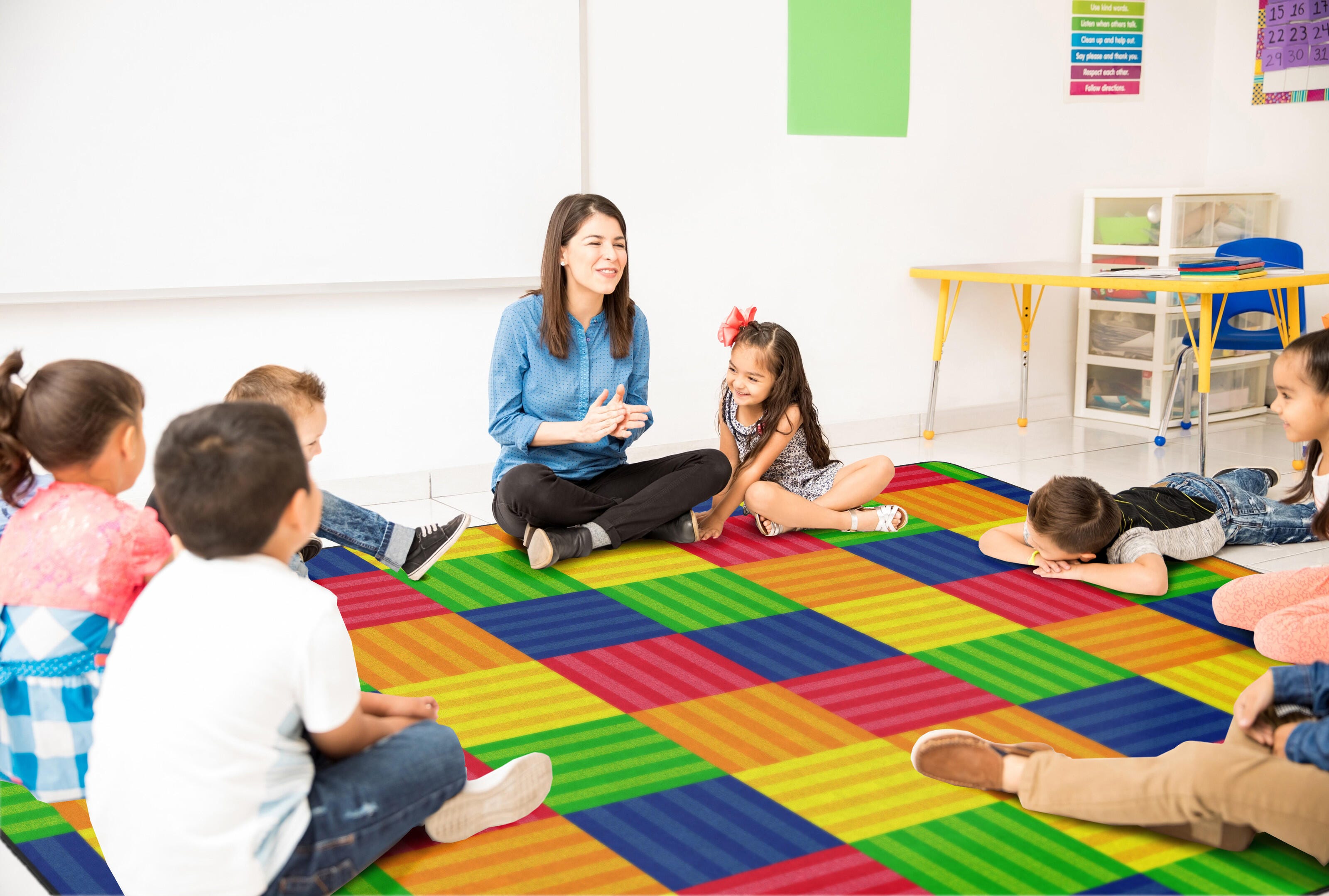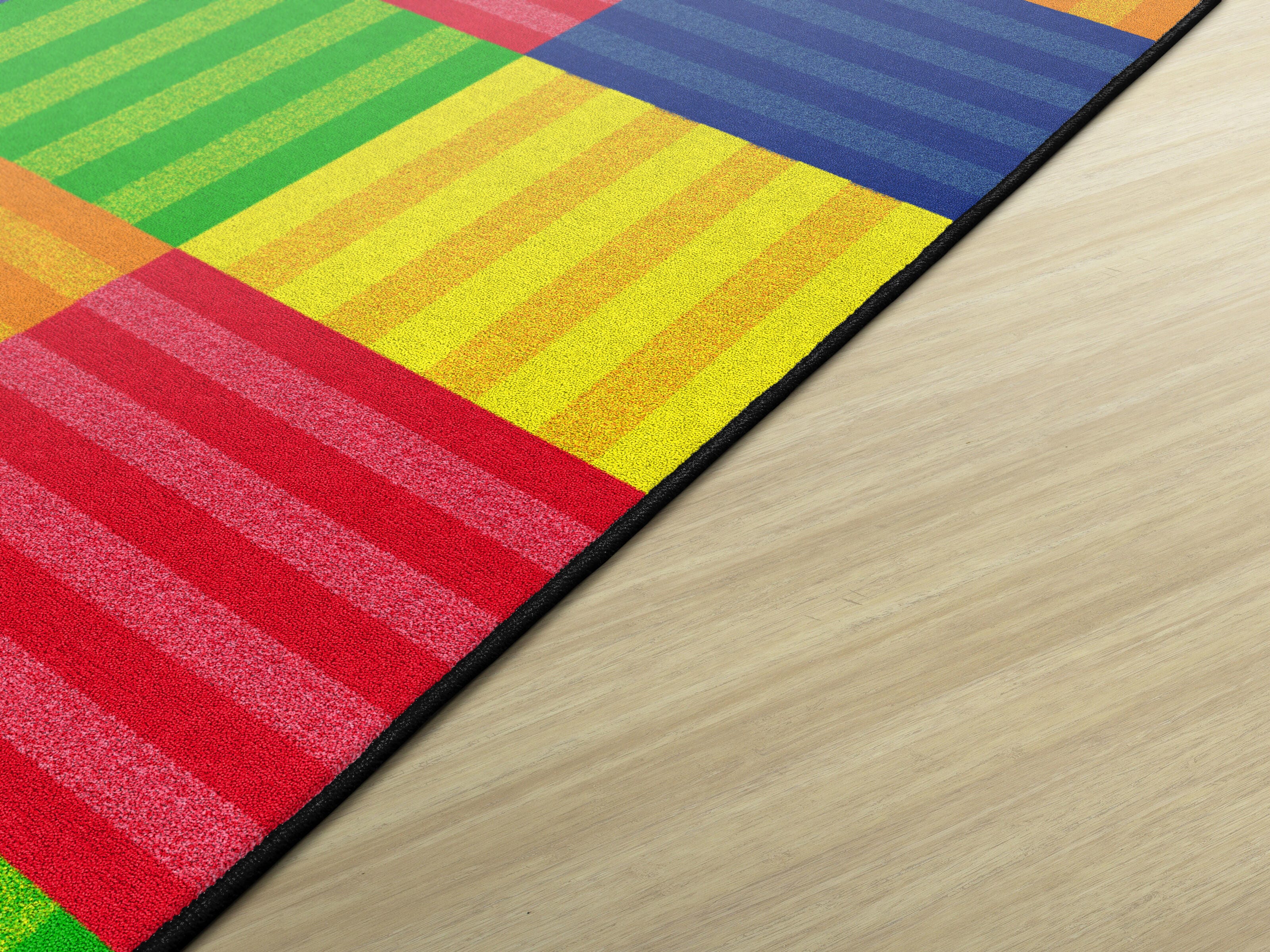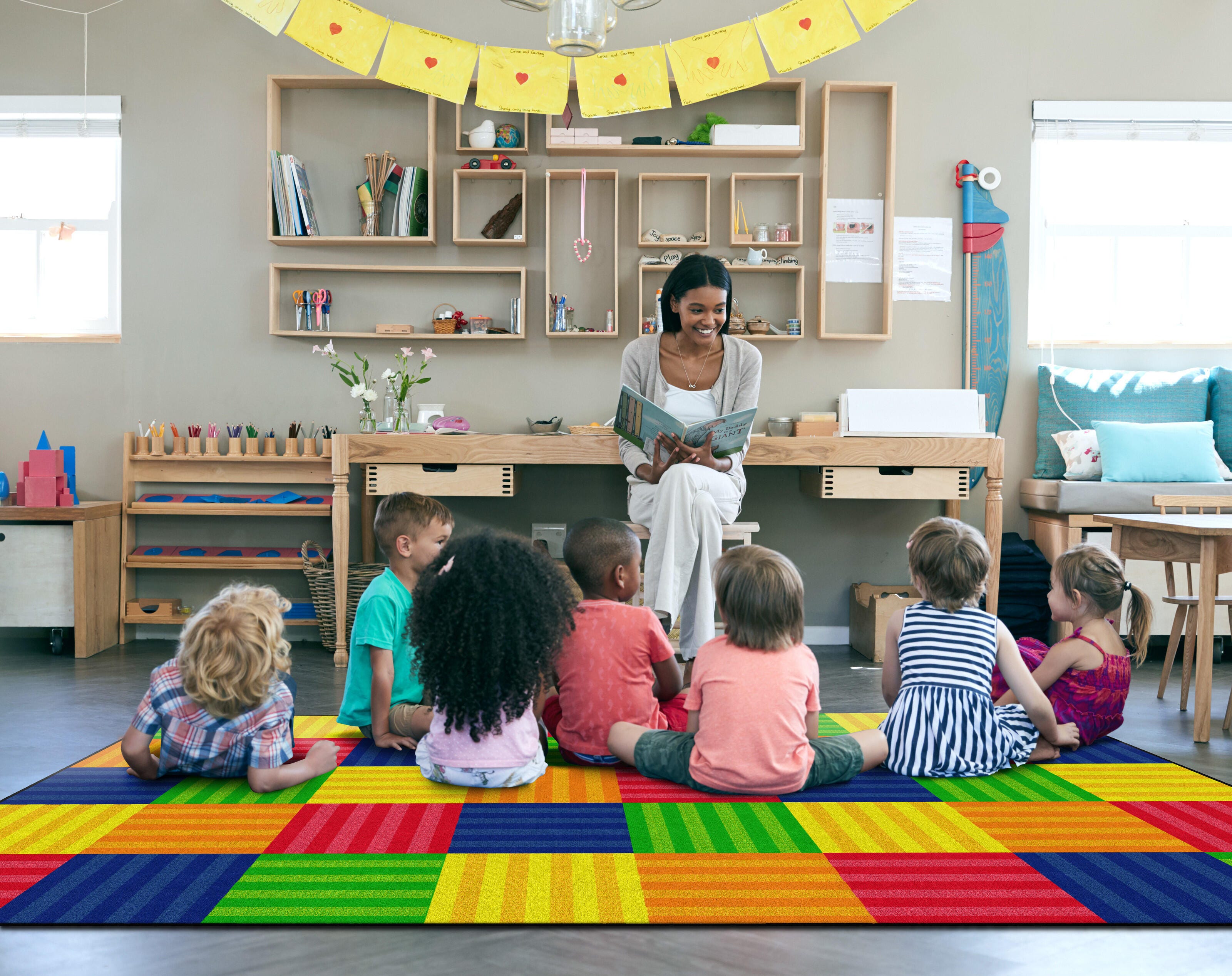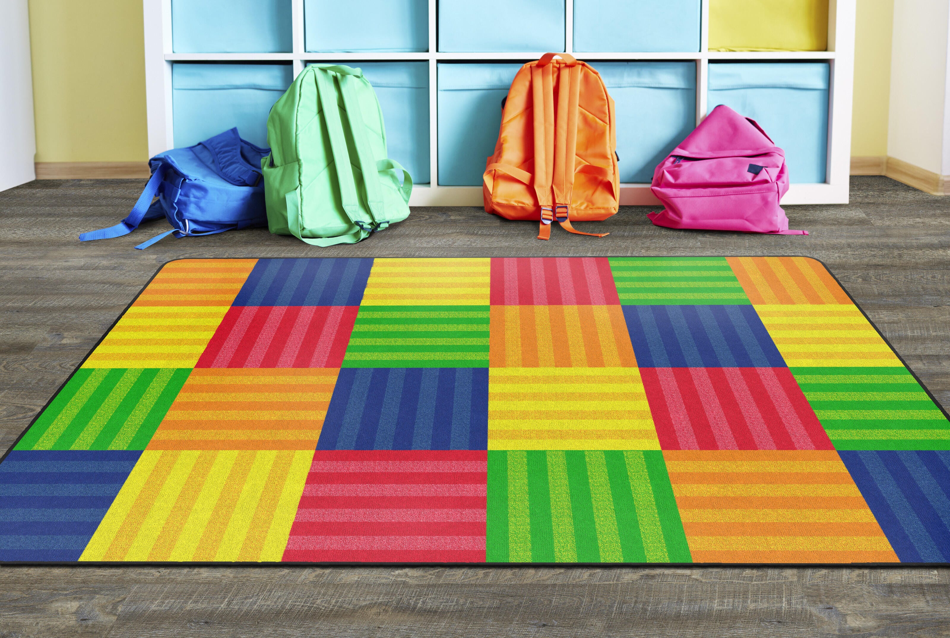 This classroom carpet provides plenty of space for students to sit, with a designated square for each student to claim as their space. Treated with SCOTCHGARD-PROTECTOR for superior soil resistance and FORCE 5, a permanent anti-microbial agent to guard against odor, mildew and mold. All Flagship Carpets are CRI Green Label Plus Certified. Available in a variety of sizes to best match your space. Please select a size when ordering.
