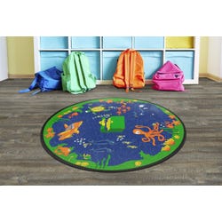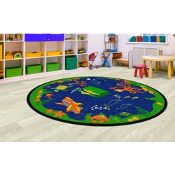 Taking a trip to the bottom of the sea has never been as exciting as it is with this seating carpet built for exploring. Take the plunge with your little learners to find hidden alphabet letters among the fish and treasure found in this seating carpet. Use as a fun area rug to decorate your playspace, or as a functional seating rug for storytime or circletime. Perfect for early learning classrooms and preschools. Available in two sizes: 6 feet and 8 feet. Please select the correctly-sized round carpet when ordering.Features