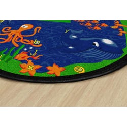 Dive into this aquatic classroom carpet that helps promote letter recognition with hidden letters scattered throughout the abyss. This round rug is available in two sizes.