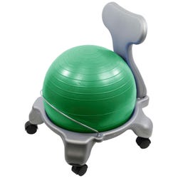 CanDo presents a mobile ergonomic seating system that combines the benefits of ball therapy with the convenience of a chair base. This CanDo plastic ball chair for children comes with an included 15 inch inflatable exercise ball that is held securely in place within the plastic chair base where user is seated. This Adult size chair measures 23 W x 20 D x 15 H inches and has a weight capacity of 150 pounds. Light assembly required.Features