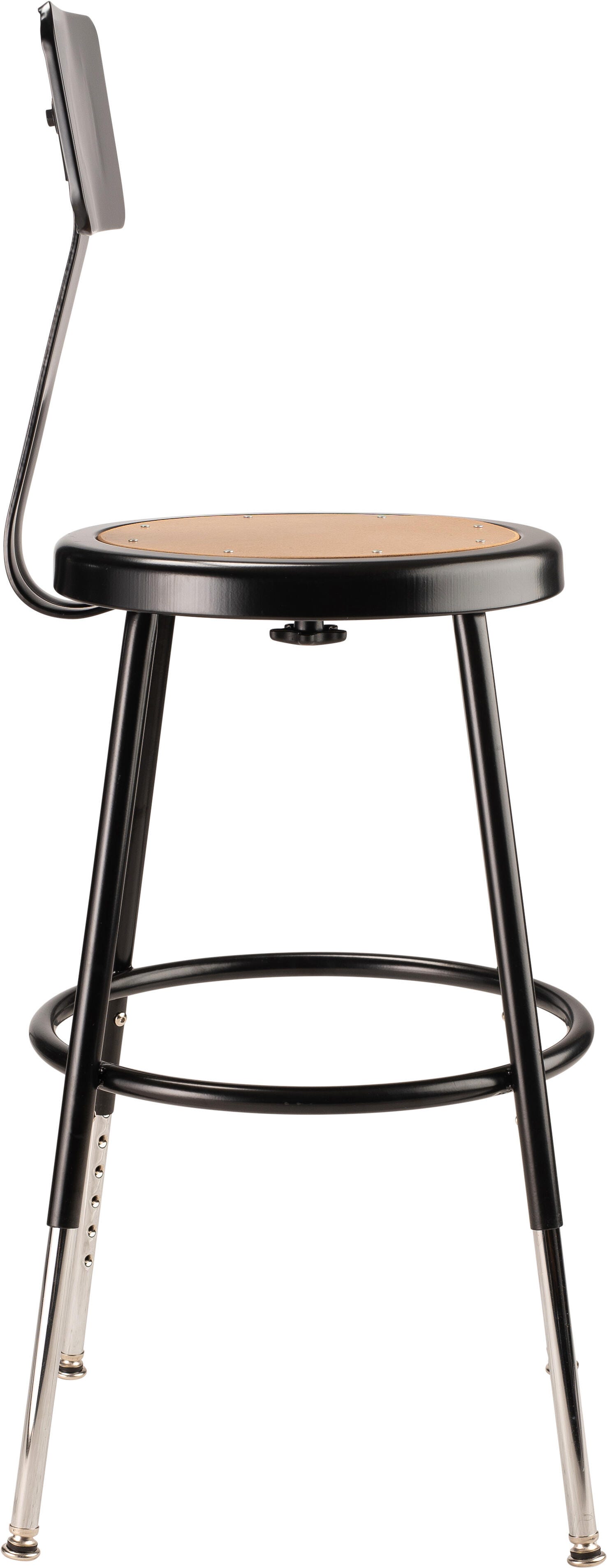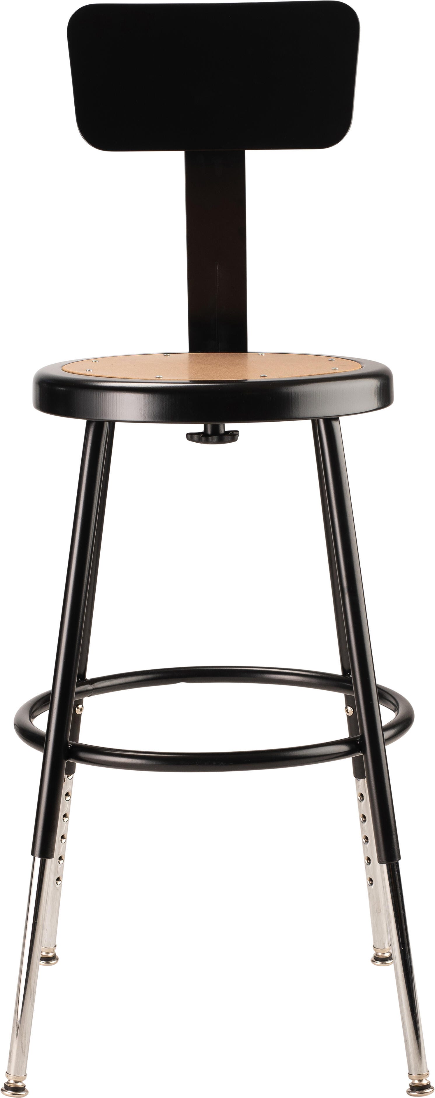 National Public Seating Height Adjustable Heavy Duty Steel Stool With Backrest, 19 to 27 Inch Seat Height, Black