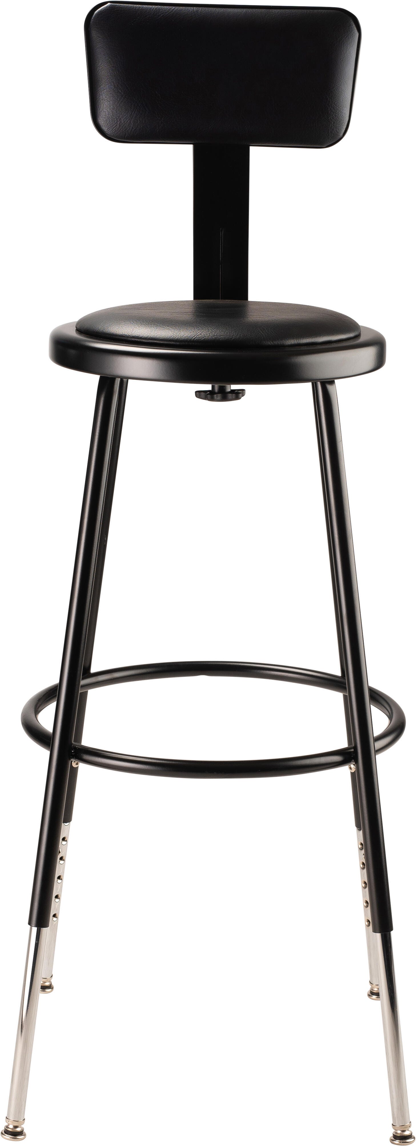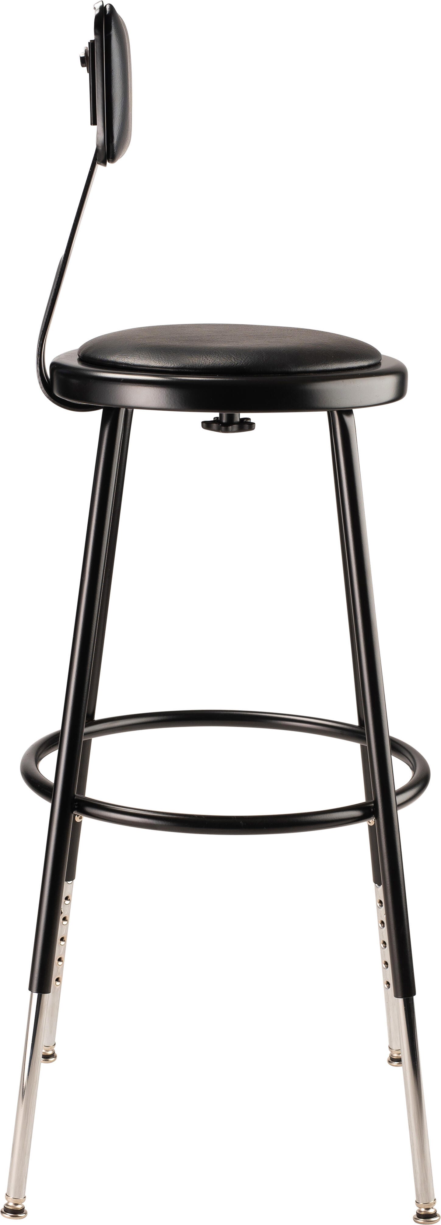 National Public Seating Height Adjustable Padded Steel Stool with Backrest, 6400 Series, 24-1/2 to 32-1/2 Inch Seat Height, Blac