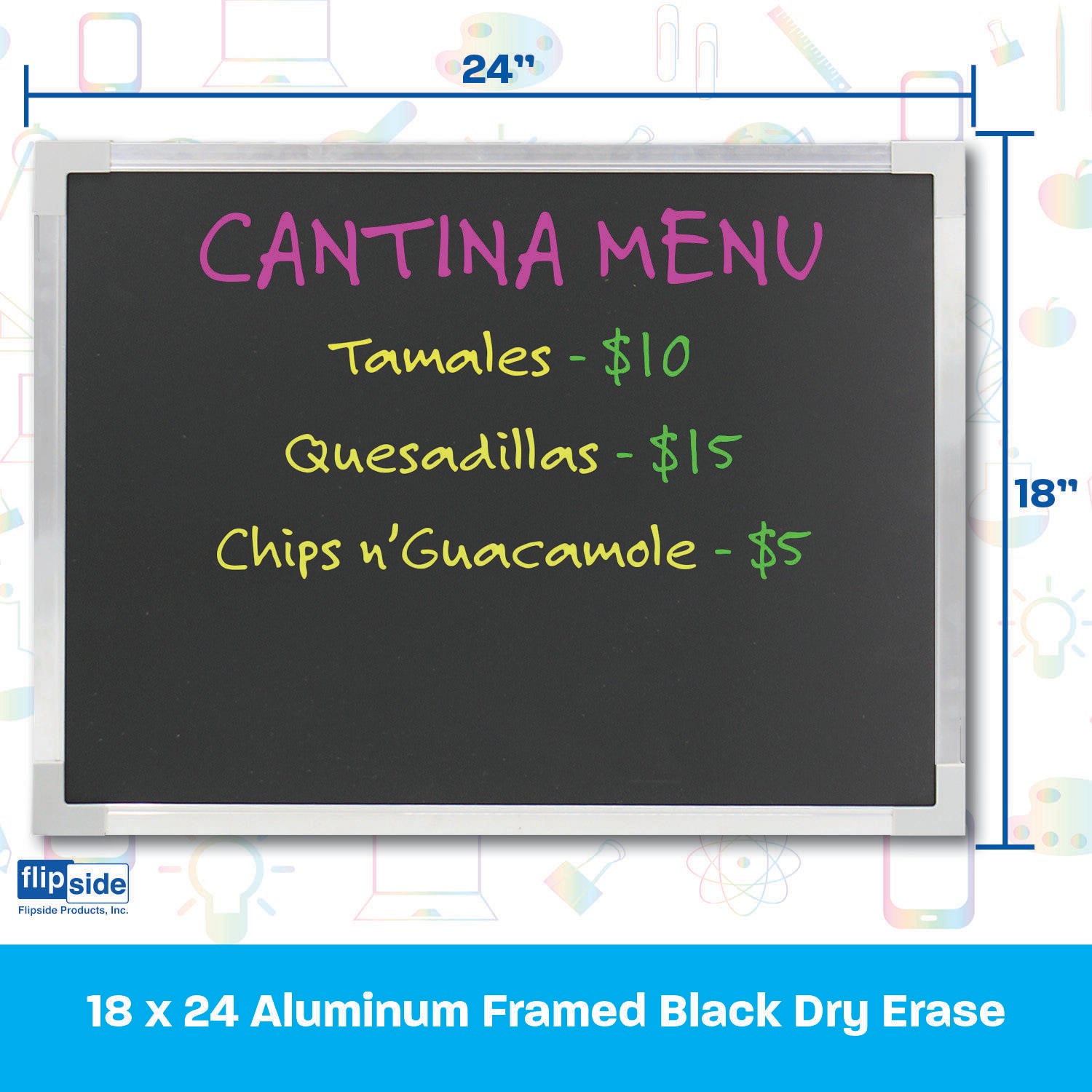 Flipside Aluminum Framed Dry Erase Board, Black Surface, 18 x 24 Inches
