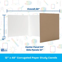 Flipside White Corrugated Study Carrels, 12 x 48 Inches, Pack of 12