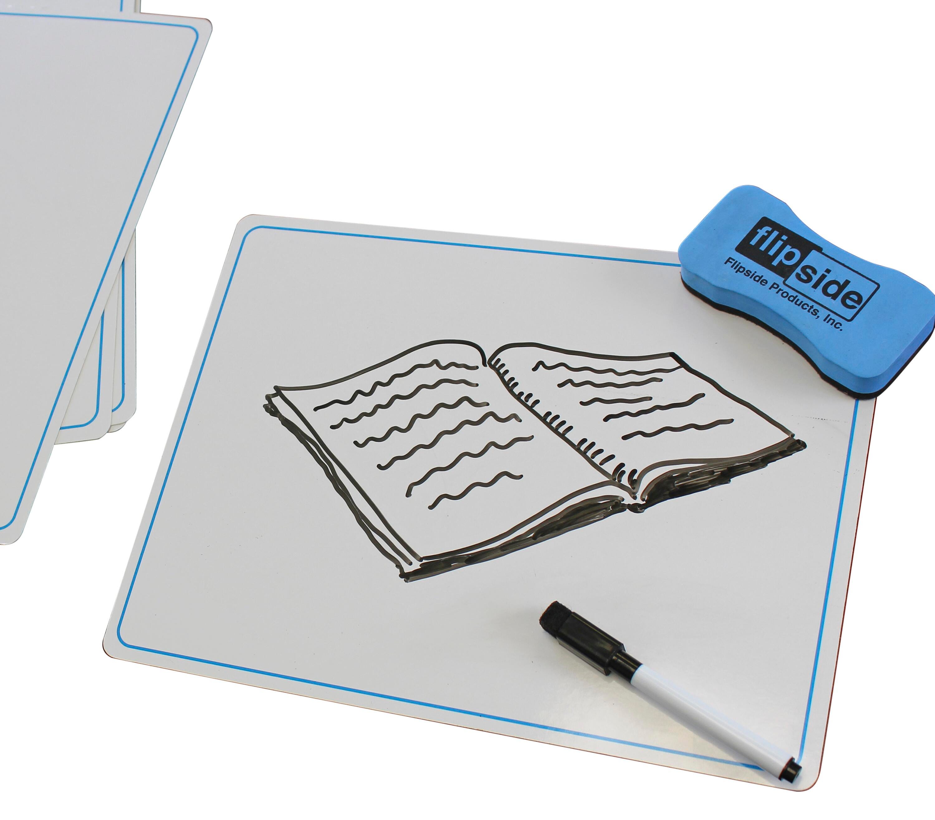 The Flipside Two-Sided Magnetic Dry Erase Learning Mats make activities in the classroom more fun! They are perfect for group and individual learning activities in the classroom, personal use in the office, or fun DIY projects at home. These sheets feature a bright white dry-erase surface and a blue border on both sides. The mats have rounded corners, and the lightweight construction makes them easy to hold, transport, and store. Each mat measures 9 x 12 inches. This pack includes 24 mats.