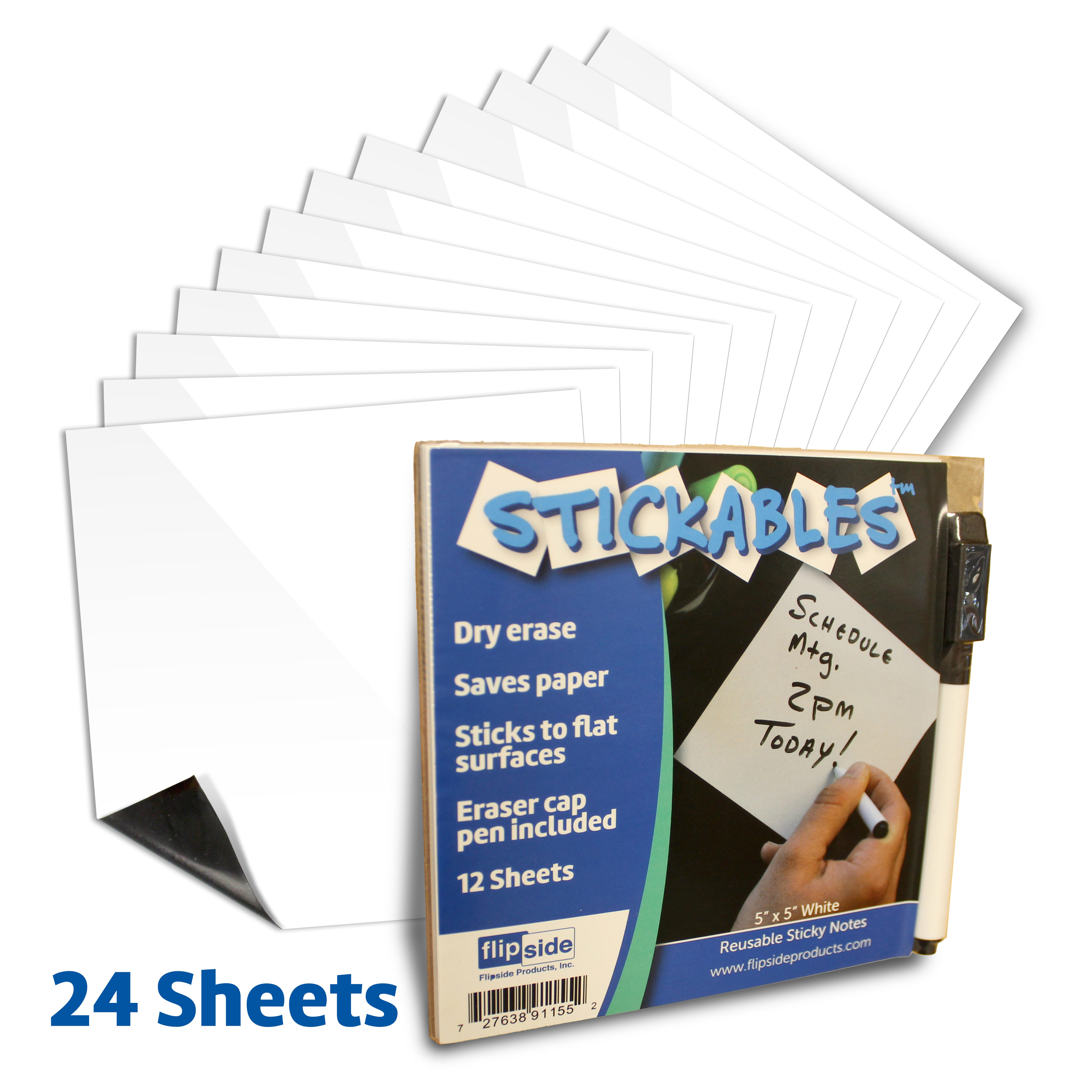 Flipside White Dry Erase Stickables with Dry Erase Marker, 5 x 5 Inches, Pack of 24
