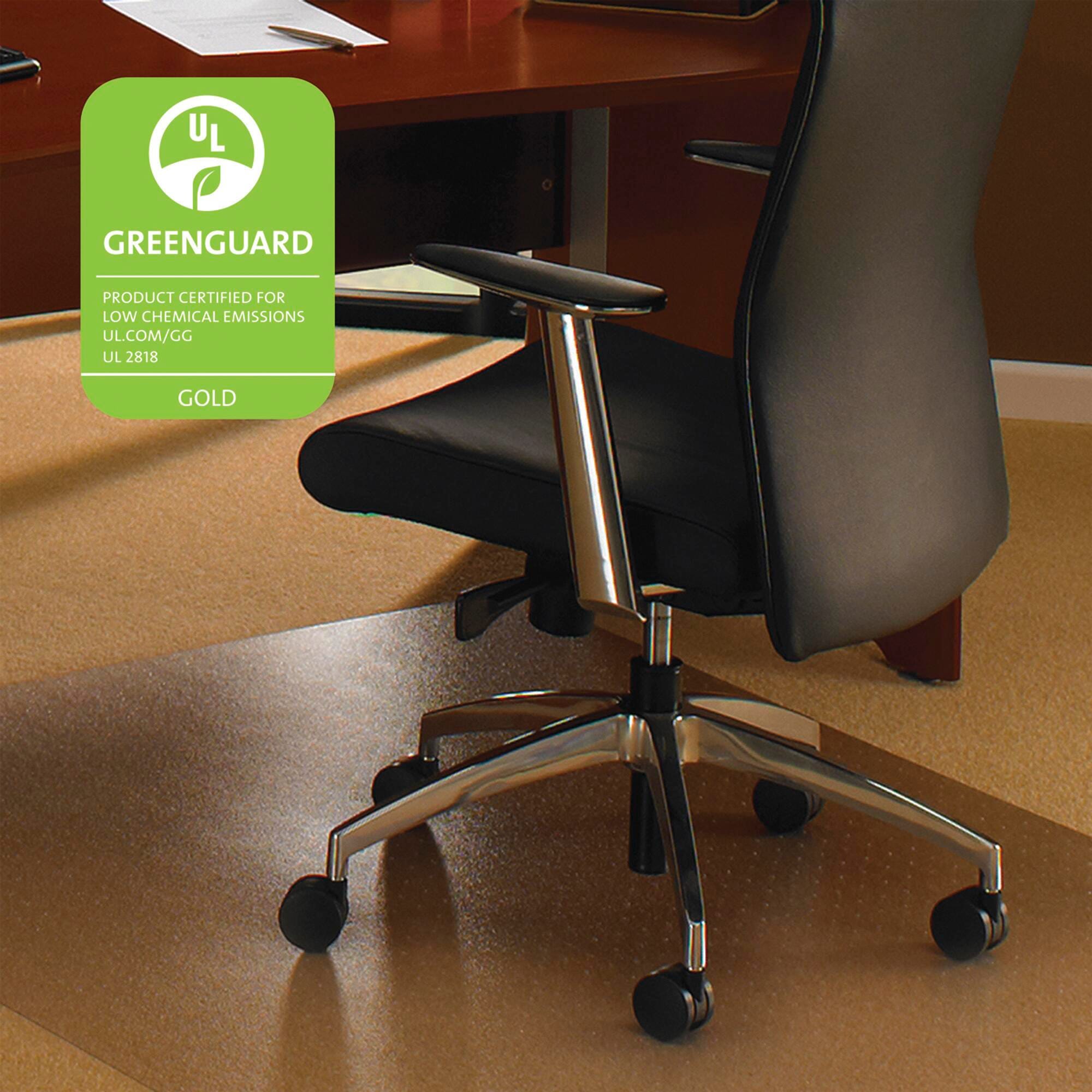 Floortex extra-large, polycarbonate chairmat provides durable floor protection for all pile carpet and hard floors with twice the impact strength of PVC. Rectangular design offers high clarity and is impact-resistant, making it virtually unbreakable. Extremely durable polycarbonate won't curl, crack, dimple or discolor in normal use and is fire-resistant, odorless and environmentally safe. Material is also completely free of phthalates and other toxic chemicals.