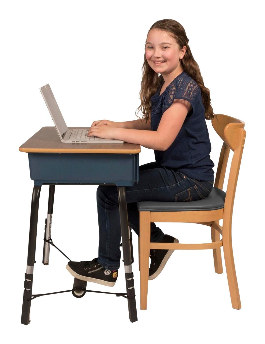 Designed by Physical Therapists, the FootFidget 2.0 is a second generation dynamic attachable footrest. Attaches to 4 legs of existing desk with snap on sleeves. Provides safe, ergonomic placement in middle of desk space and 3 adjustable heights for comfort. Students are seated in a 90-90-90 ‘ready to learn’ position. Provides true proprioceptive input to improve students focus, attention, posture, concentration and memory while expelling excess ‘fidgety’ energy. Design is black, quiet and non-distracting in the classroom. Quick and easy to install with no tools needed.Features