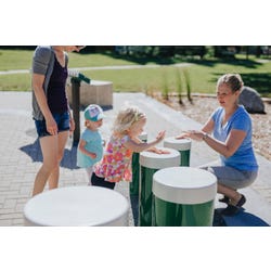This set of five playground drums can be played by hand, creating deep resonating beats that inspire movement and dance. These surface-mounted drums can be installed in any arrangement or layout, and measure 75 W x 15 D x 37 H inches.Features