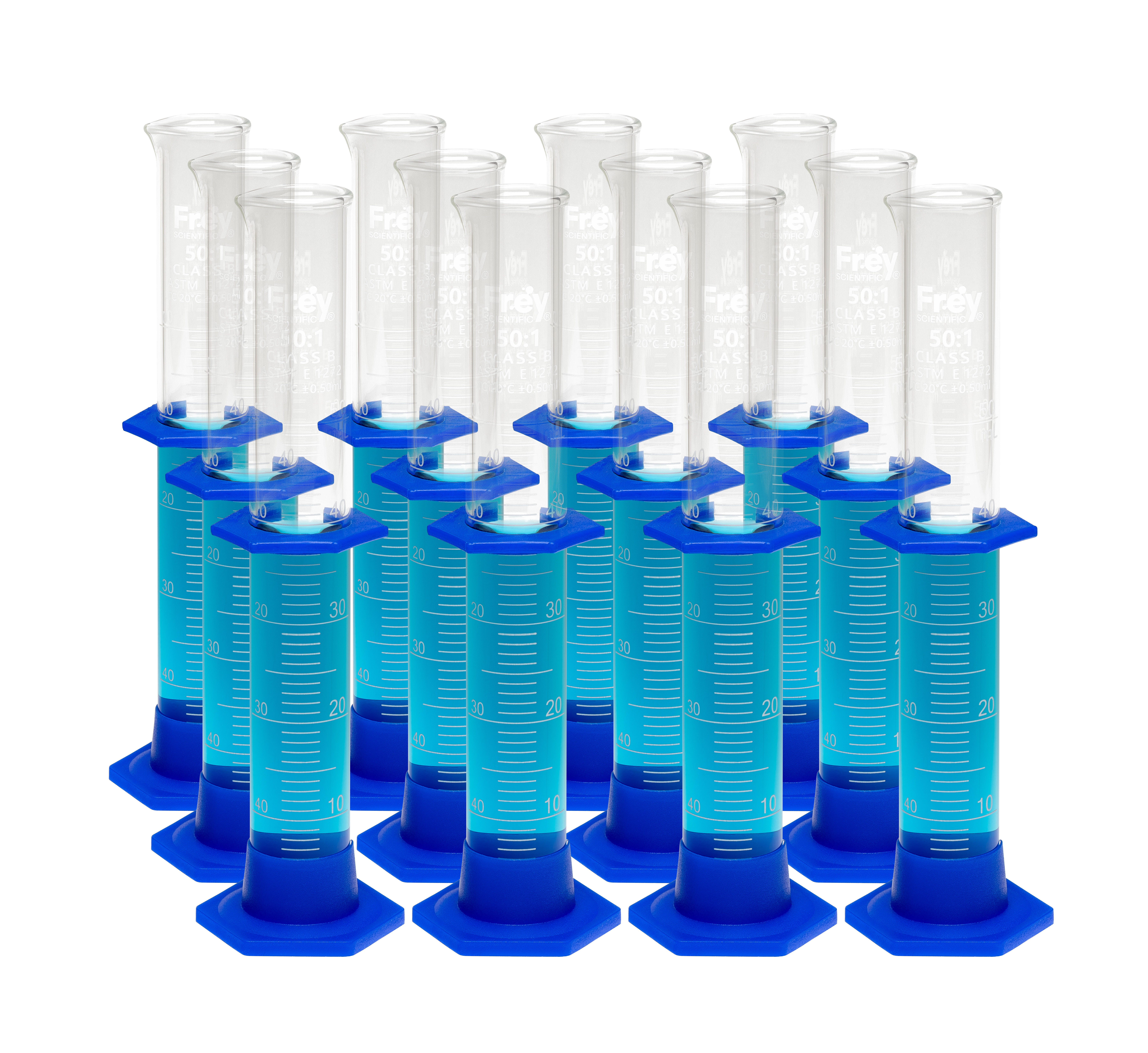 Frey Scientific Borosilicate Glass Cylinders with Plastic Bases, 50 mL, Pack of 12