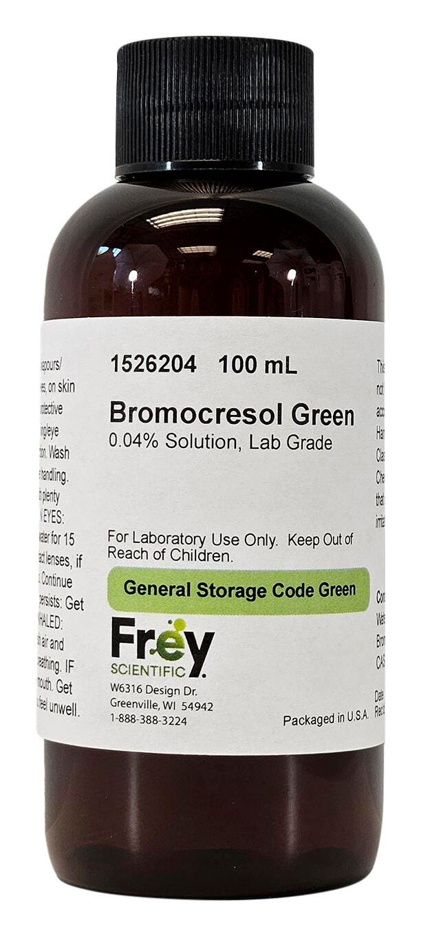 Frey Scientific Bromocresol, Green, 0.04% Solution, Lab Grade, 100mL