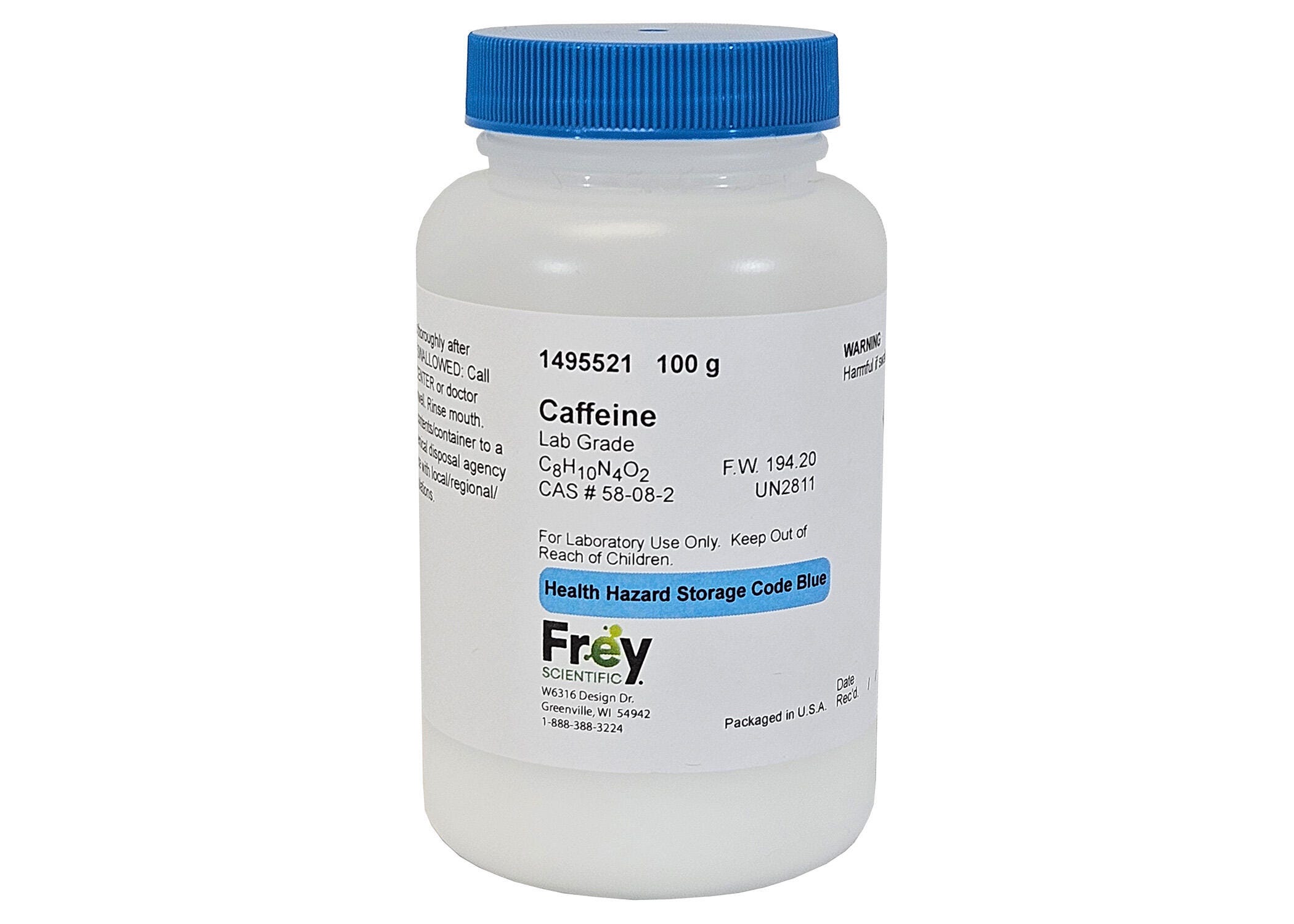 Frey Scientific Caffeine, White, Lab Grade, 100 Grams