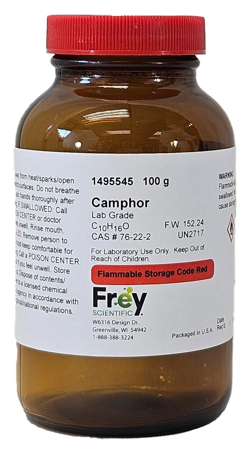 Frey Scientific Camphor, White, Lab Grade, 100 Grams