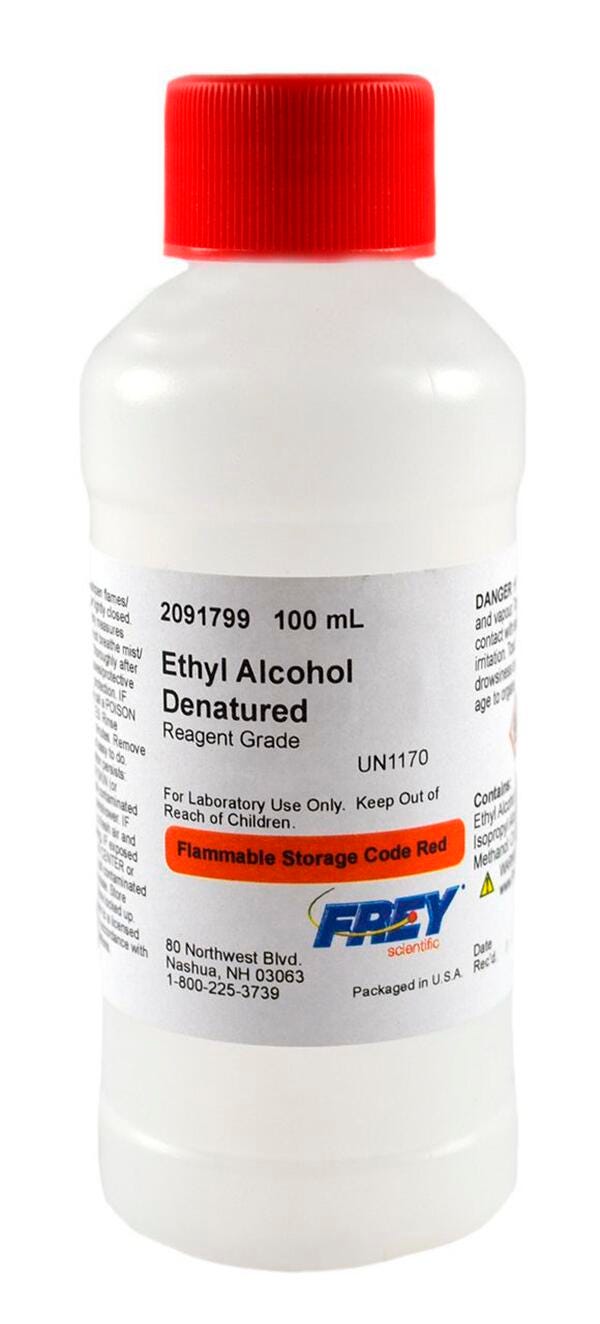 • Frey Scientific Ethyl Alcohol, Denatured, Reagent Grade, 100mL